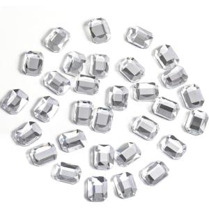 Beadsland 144pcs Hotfix Rectangle Rhinestones, Flat Back Octagon Rhinestones, Glass Flatback Crystal Shaped Gems,6ⅹ8mm