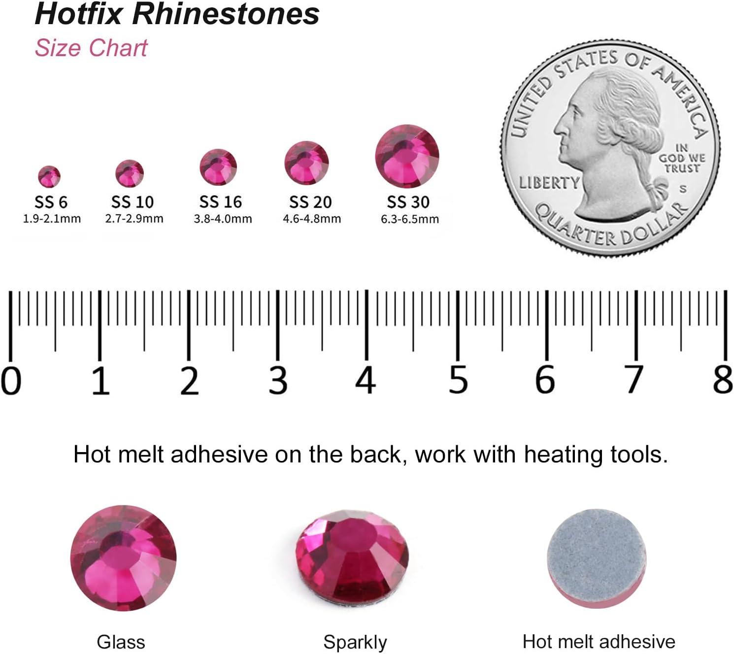 6000PCS Hotfix Rhinestones Bulk, Clear Rhinestones for Crafts Clothes,Hotfix Crystals DIY Decoration, SS10, 2.7-2.9mm(Fuchsia)