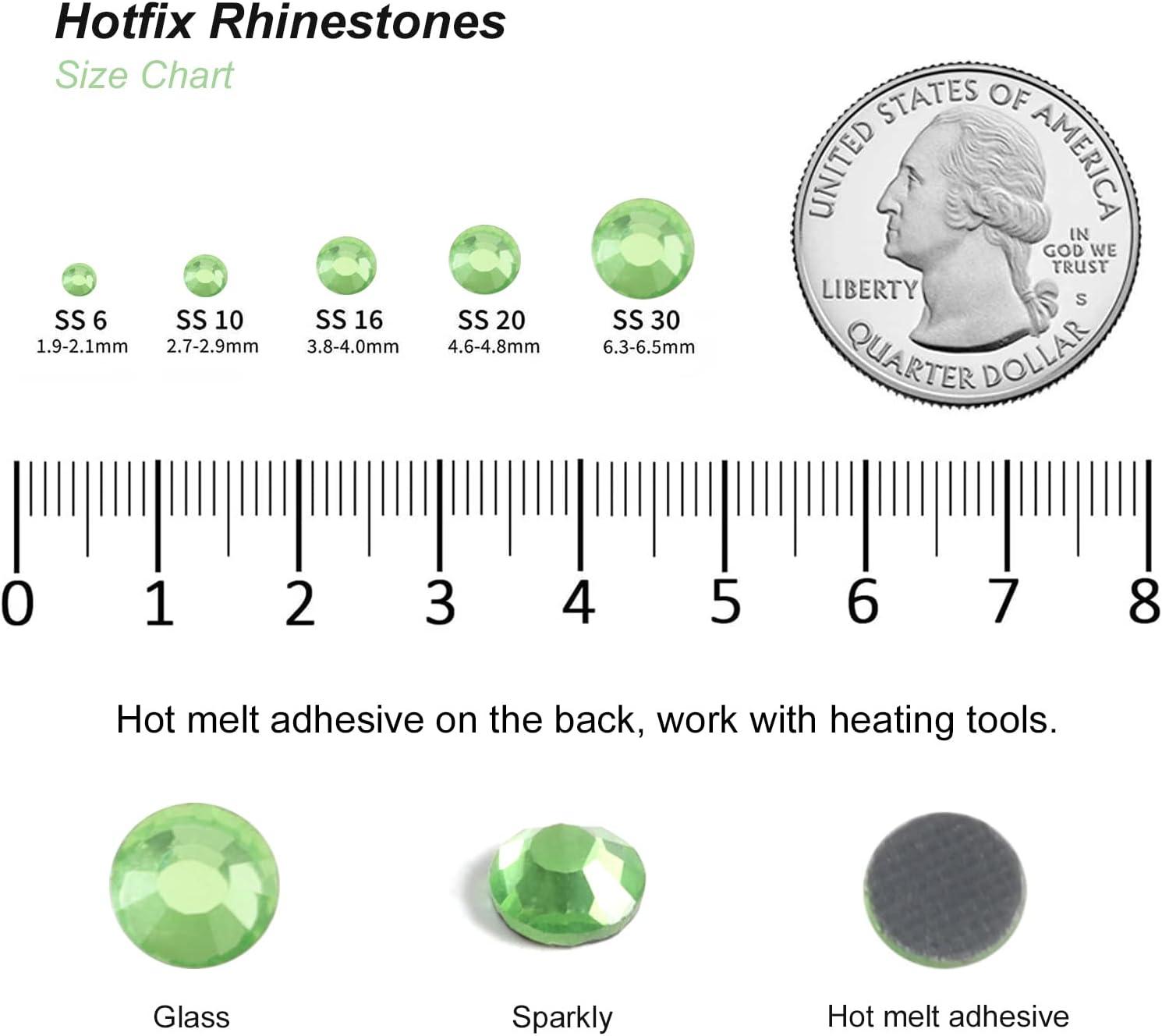 6000PCS Hotfix Rhinestones Bulk, Clear Rhinestones for Crafts Clothes,Hotfix Crystals DIY Decoration, SS10, 2.7-2.9mm(Light Green)