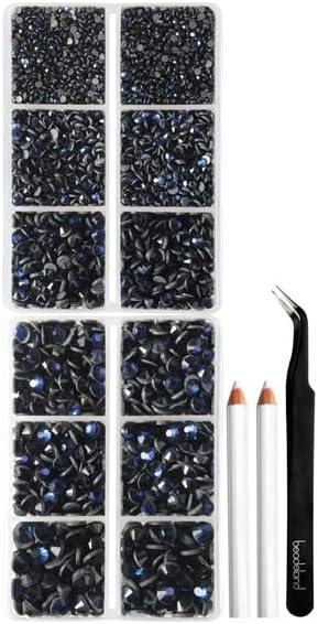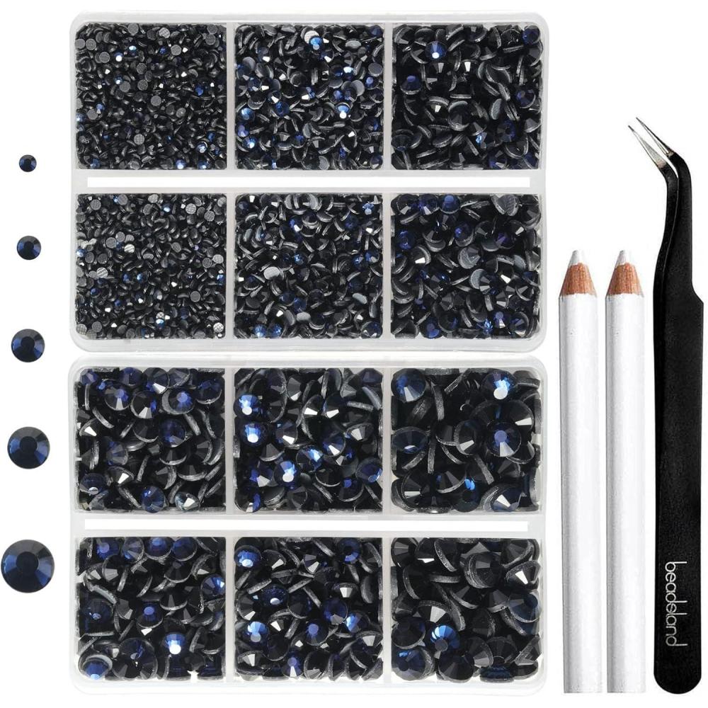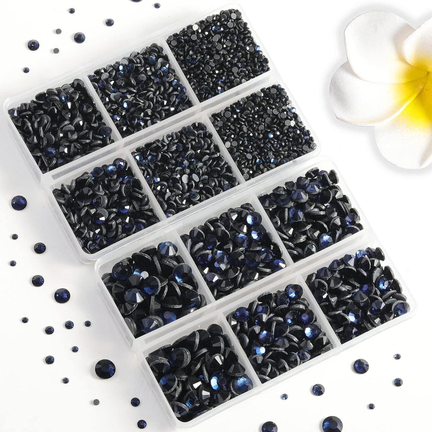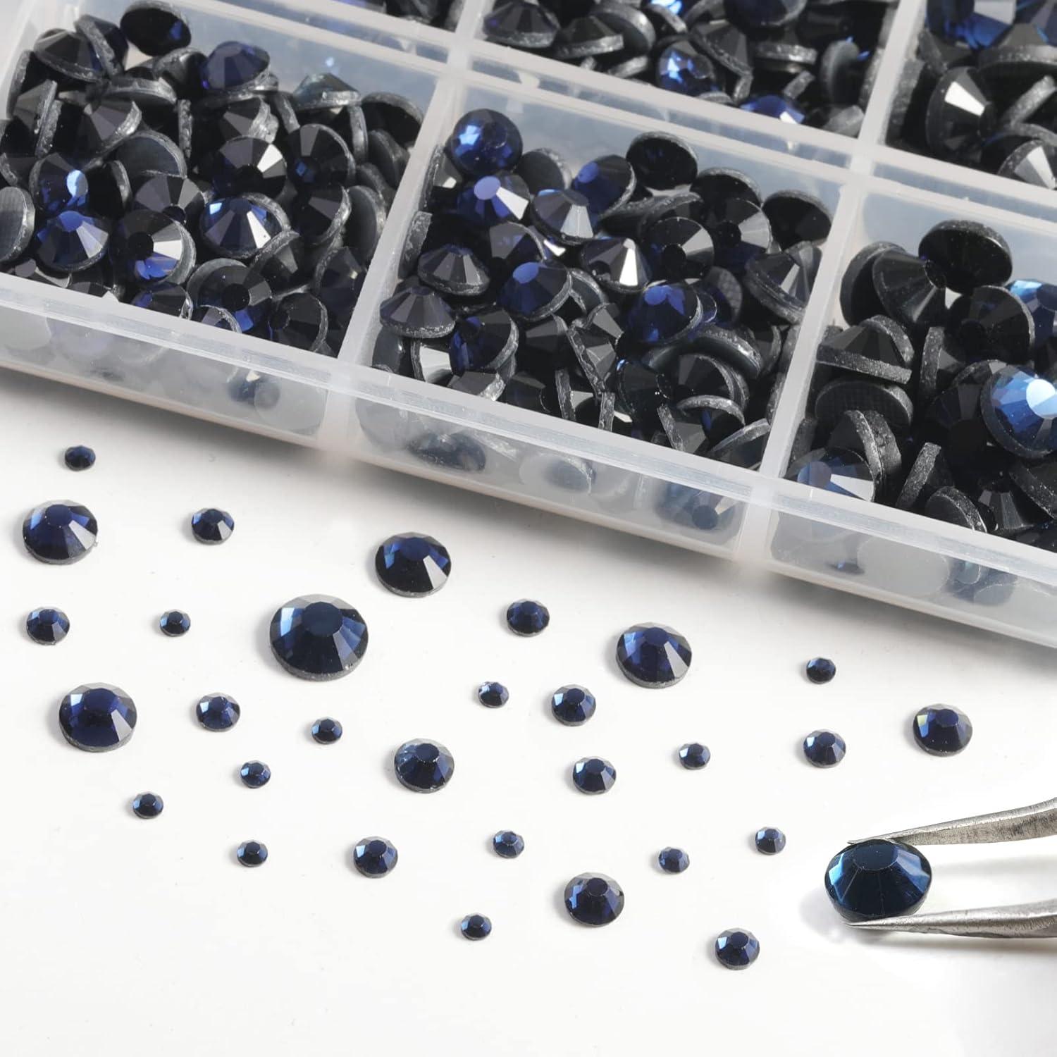 Pack of 2 boxes, total 6736 pieces royal blue hotfix rhinestones in 5 sizes, 1 tweezer and 2 wax pencils for rhinestones. A cost-effective choice, suitable for beginners to practice