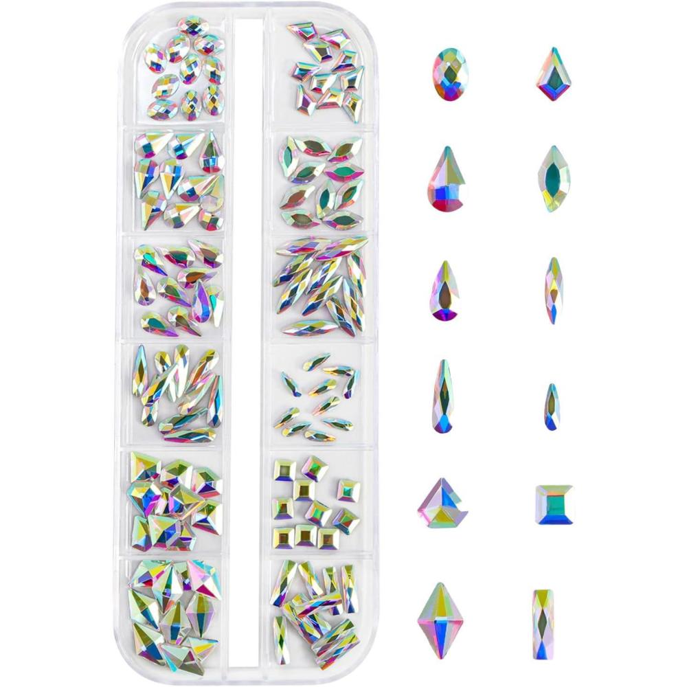 This 120pcs shaped flatback rhinestones kit with tools including 12 style shapes crystal rhinestones and 1 pcs pick pen.