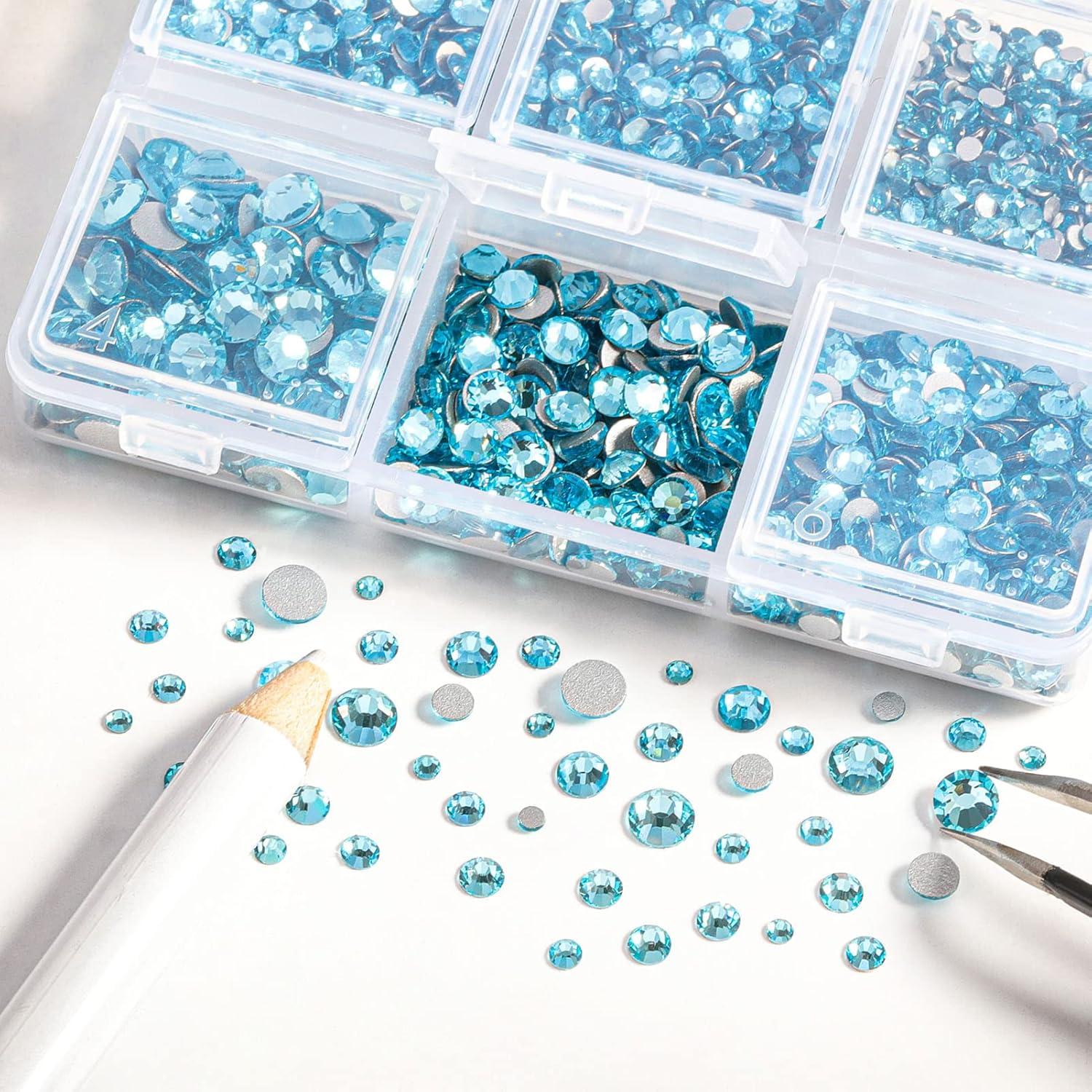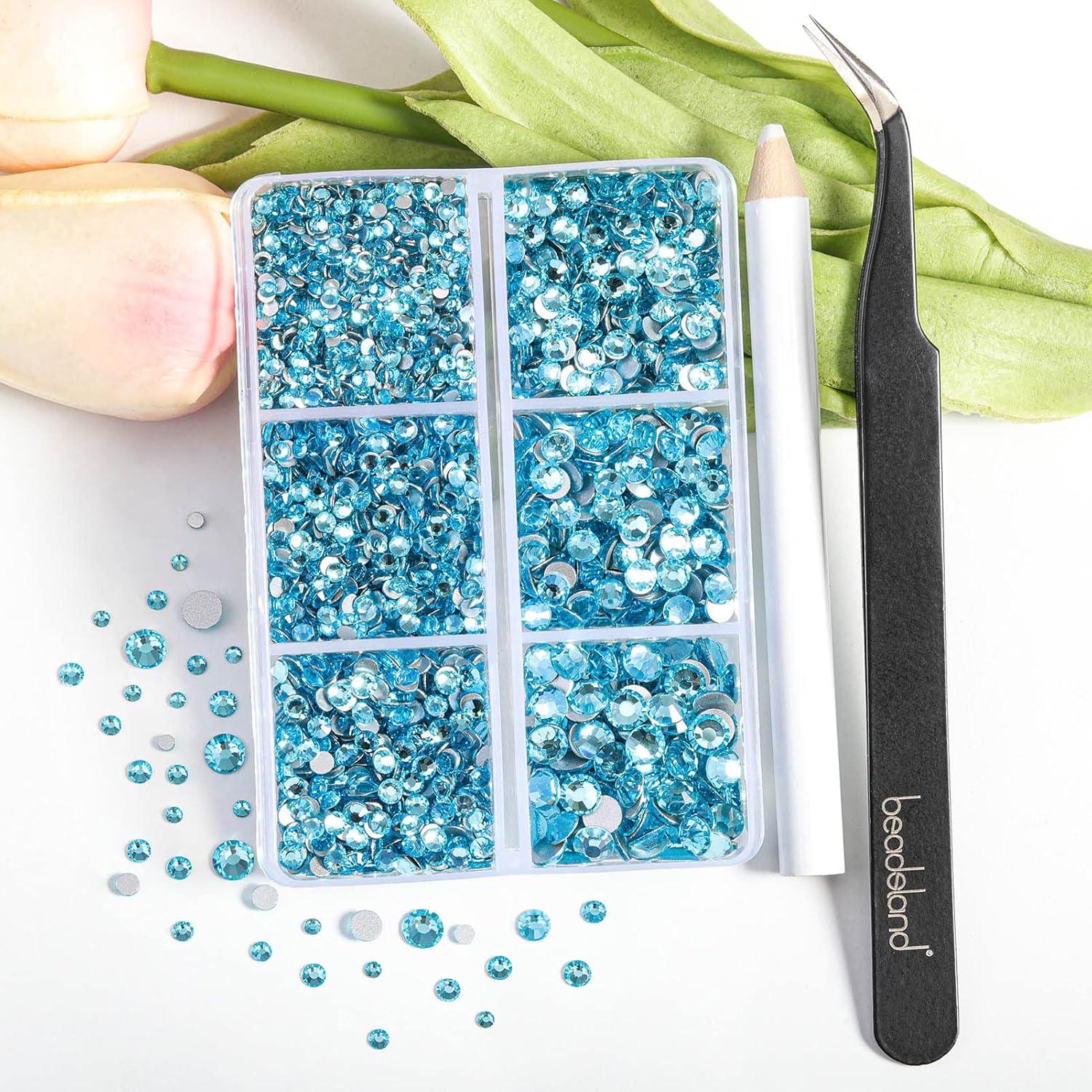Beadsland 4300pcs Flatback Rhinestones,Gray Rhinestone Nail Gems Round Crystal Rhinestones for Crafts,Mixed 6 Sizes with Picking Tweezers and Wax Pencil Kit, SS6-SS20,Black Diamond(Aquamarine AB)