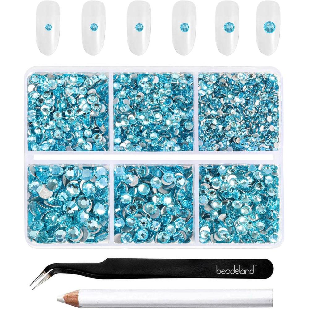 imageBeadsland 4300pcs Flatback RhinestonesGray Rhinestone Nail Gems Round Crystal Rhinestones for CraftsMixed 6 Sizes with Picking Tweezers and Wax Pencil Kit SS6SS20Black DiamondAquamarine AB