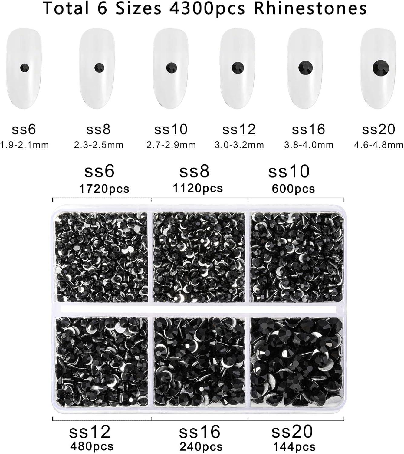 Beadsland 4300pcs Flatback Rhinestones,Gray Rhinestone Nail Gems Round Crystal Rhinestones for Crafts,Mixed 6 Sizes with Picking Tweezers and Wax Pencil Kit, SS6-SS20,Black Diamond(Jet Black)