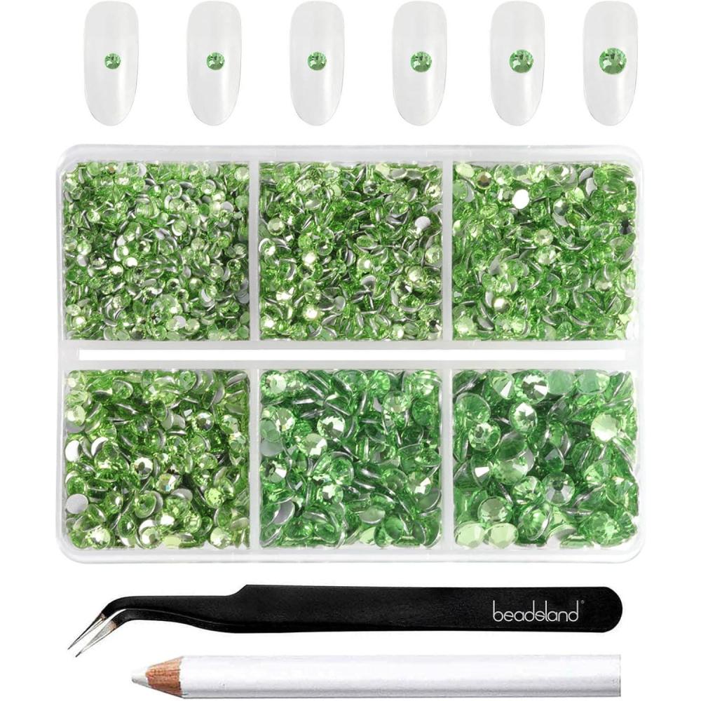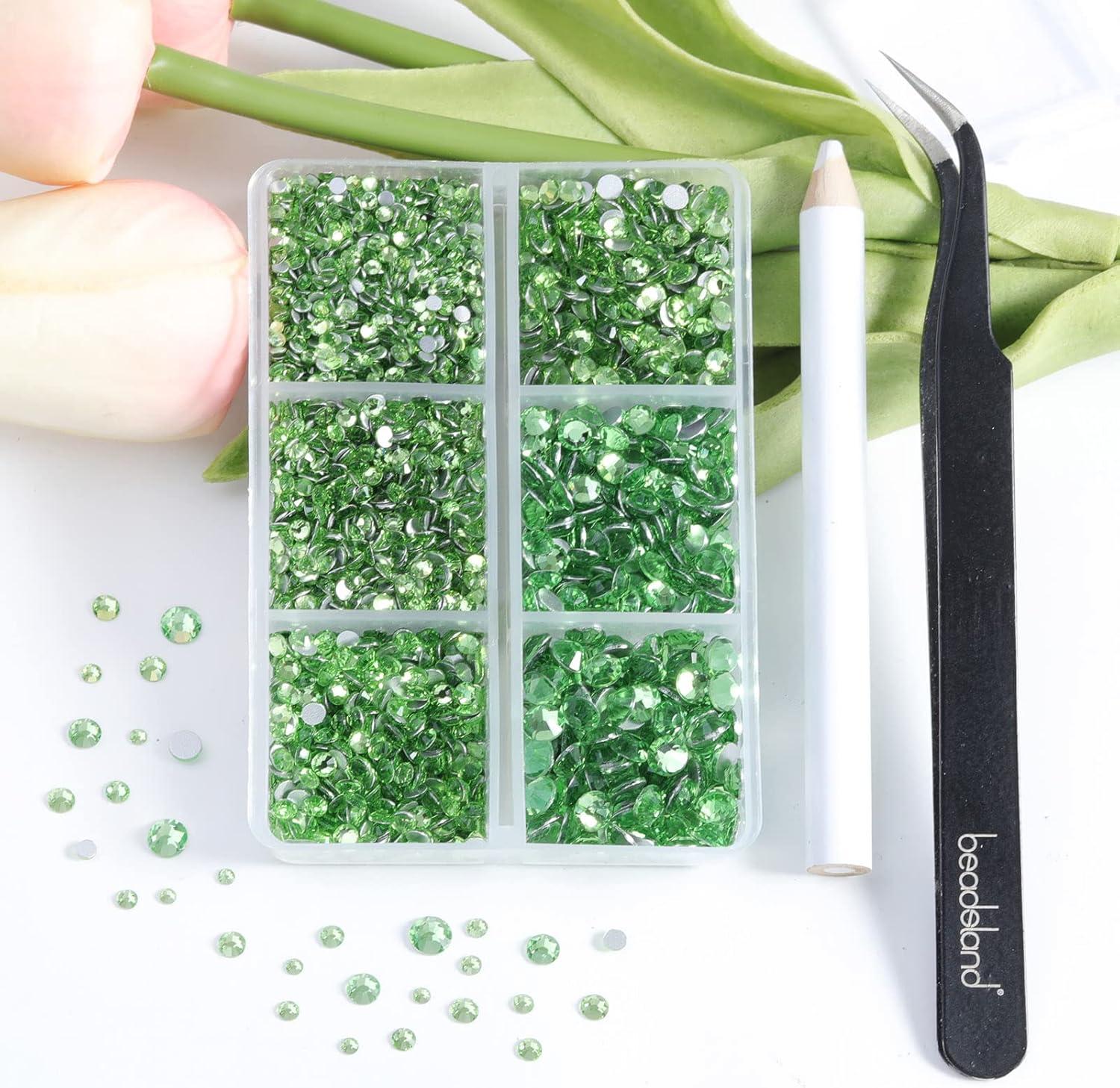 imageBeadsland 4300pcs Flatback RhinestonesGray Rhinestone Nail Gems Round Crystal Rhinestones for CraftsMixed 6 Sizes with Picking Tweezers and Wax Pencil Kit SS6SS20Black DiamondLight Green