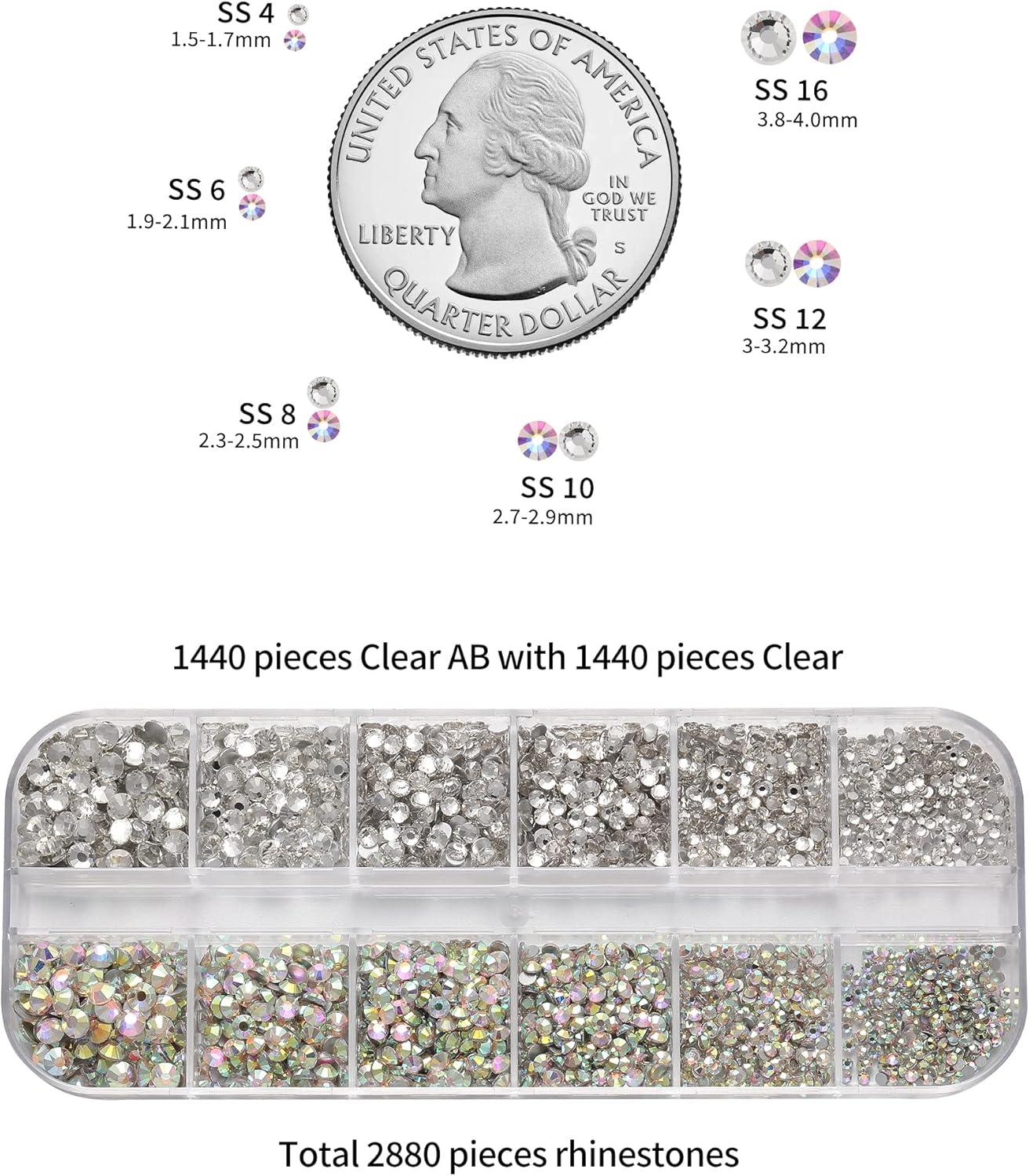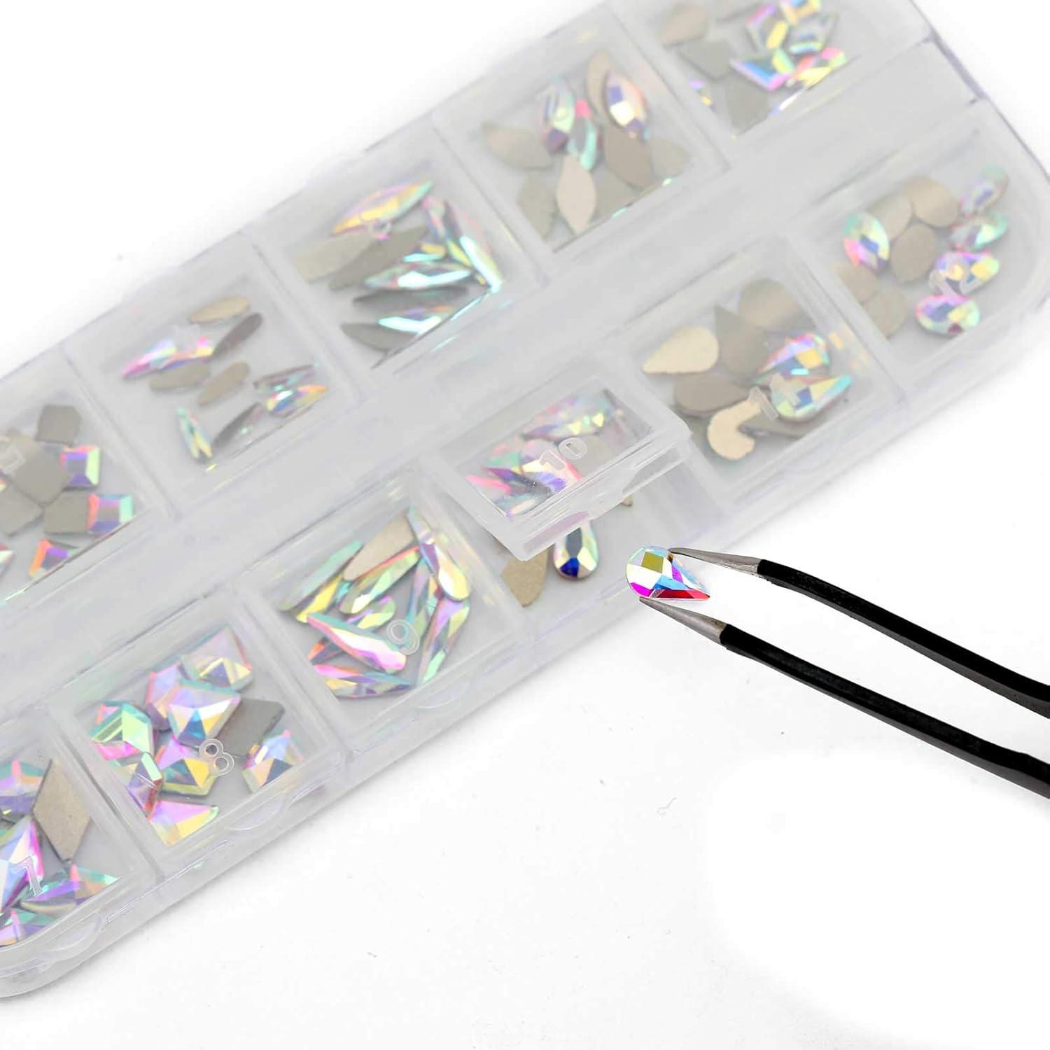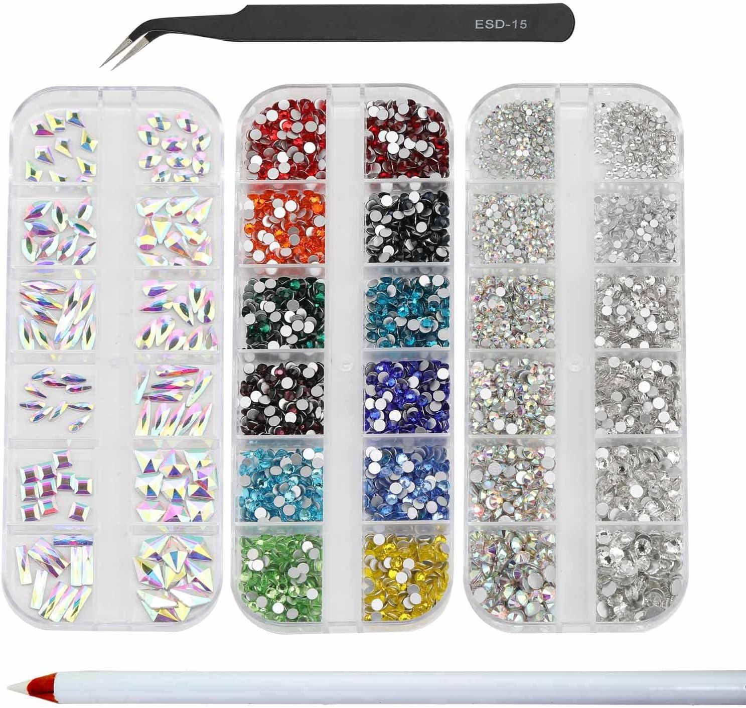 This crystal rhinestones Kit with tools including 3 box 5280 rhinestones in 6 sizes,120 pieces multi shape flatback crystal,1 pcs tweezer and 1 pcs pick pen.