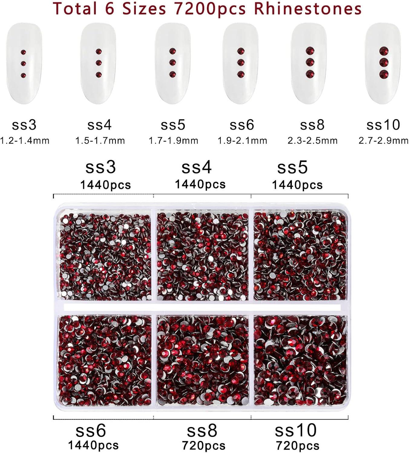 Large Quantity Nail Art Rhinestones Gems: SS3(1.2-1.4mm) 1440pcs,SS4(1.5-1.7mm) 1440pcs,SS5(1.7-1.8mm) 1440pcs,SS6(1.9-2.1mm) 1440pcs,SS8(2.3-2.5mm) 720pcs,SS10(2.7-2.9mm) 720pcs.Quantities may vary slightly.Color shades of different sizes may vary slightly.