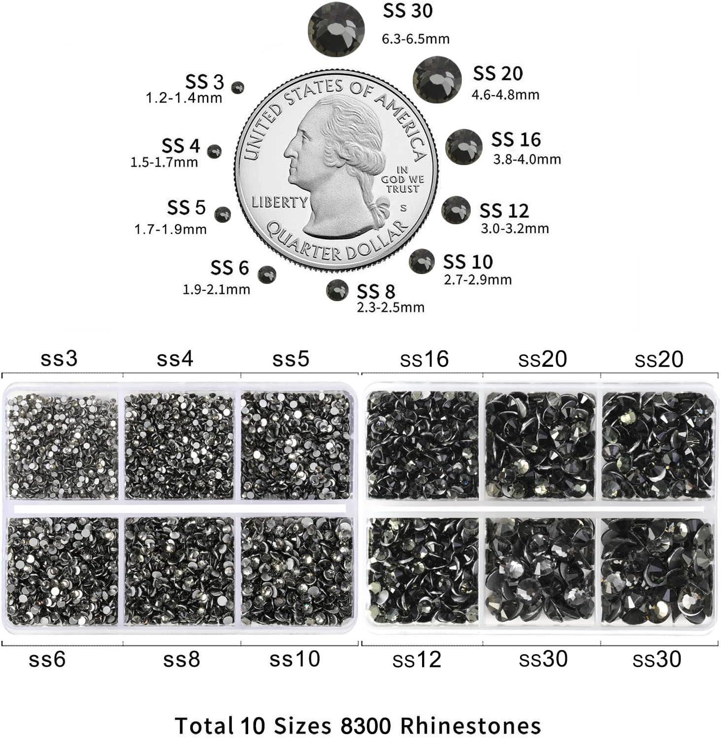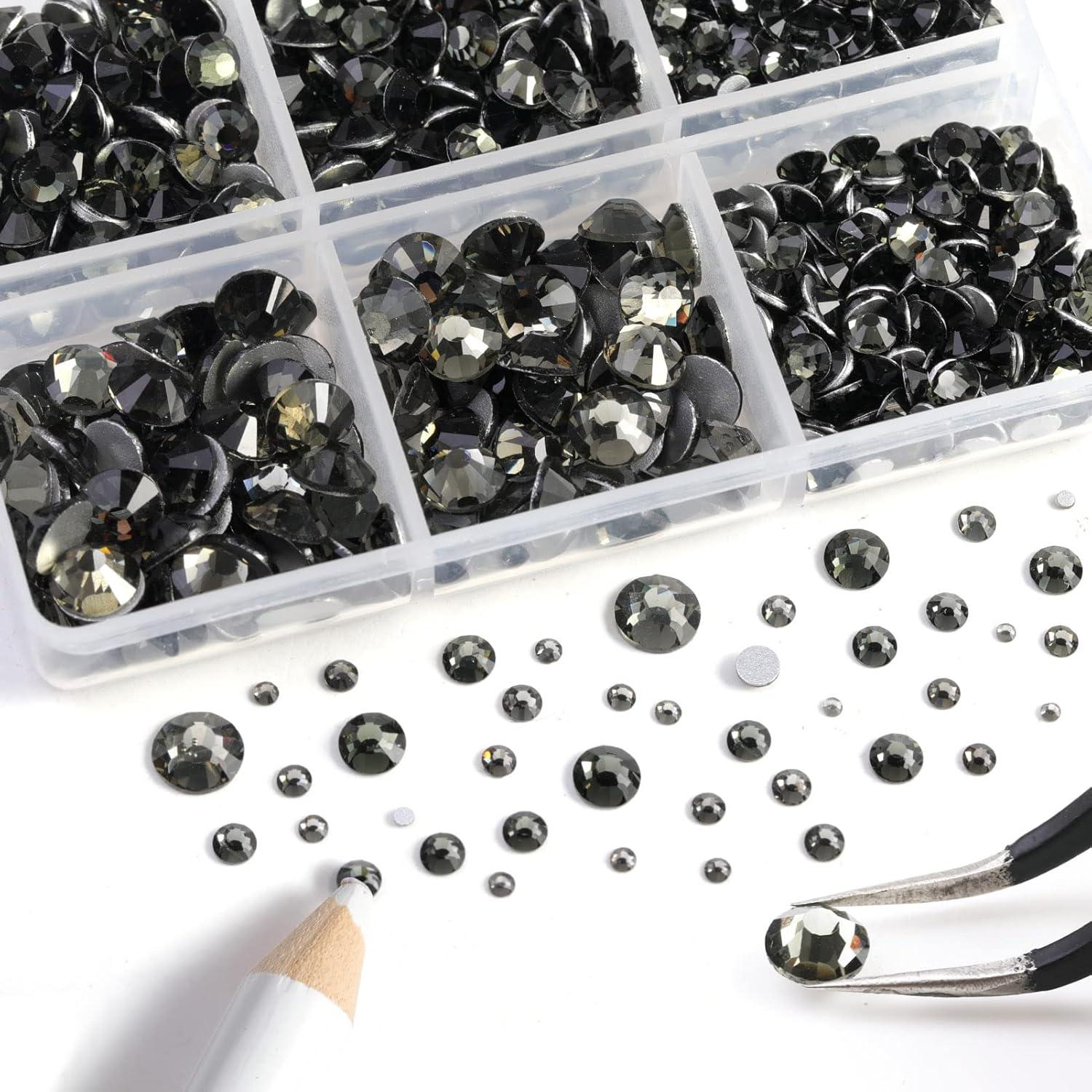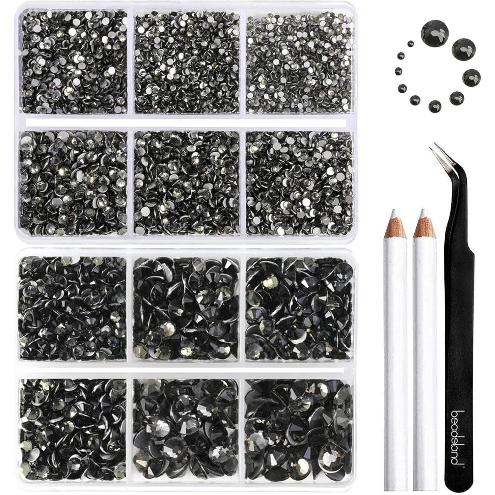 imageBeadsland 8300PCS Flatback Rhinestones AB Crystal Rhinestone Round Crystal Rhinestones for Crafts Mixed 10 Sizes with Wax Pencil and Tweezer Kit SS3SS30 Crystal ABBlack