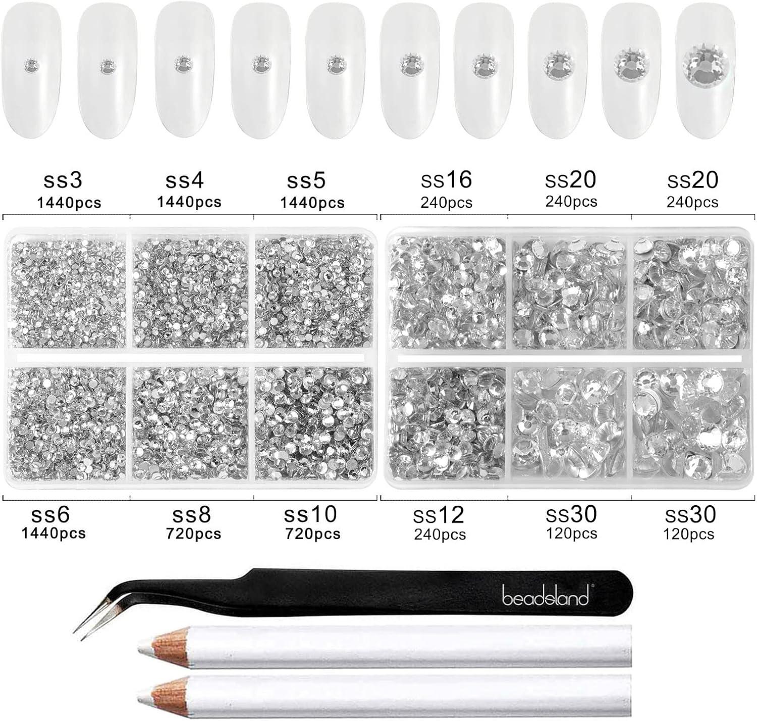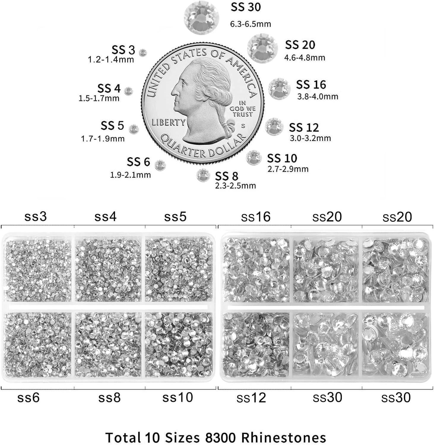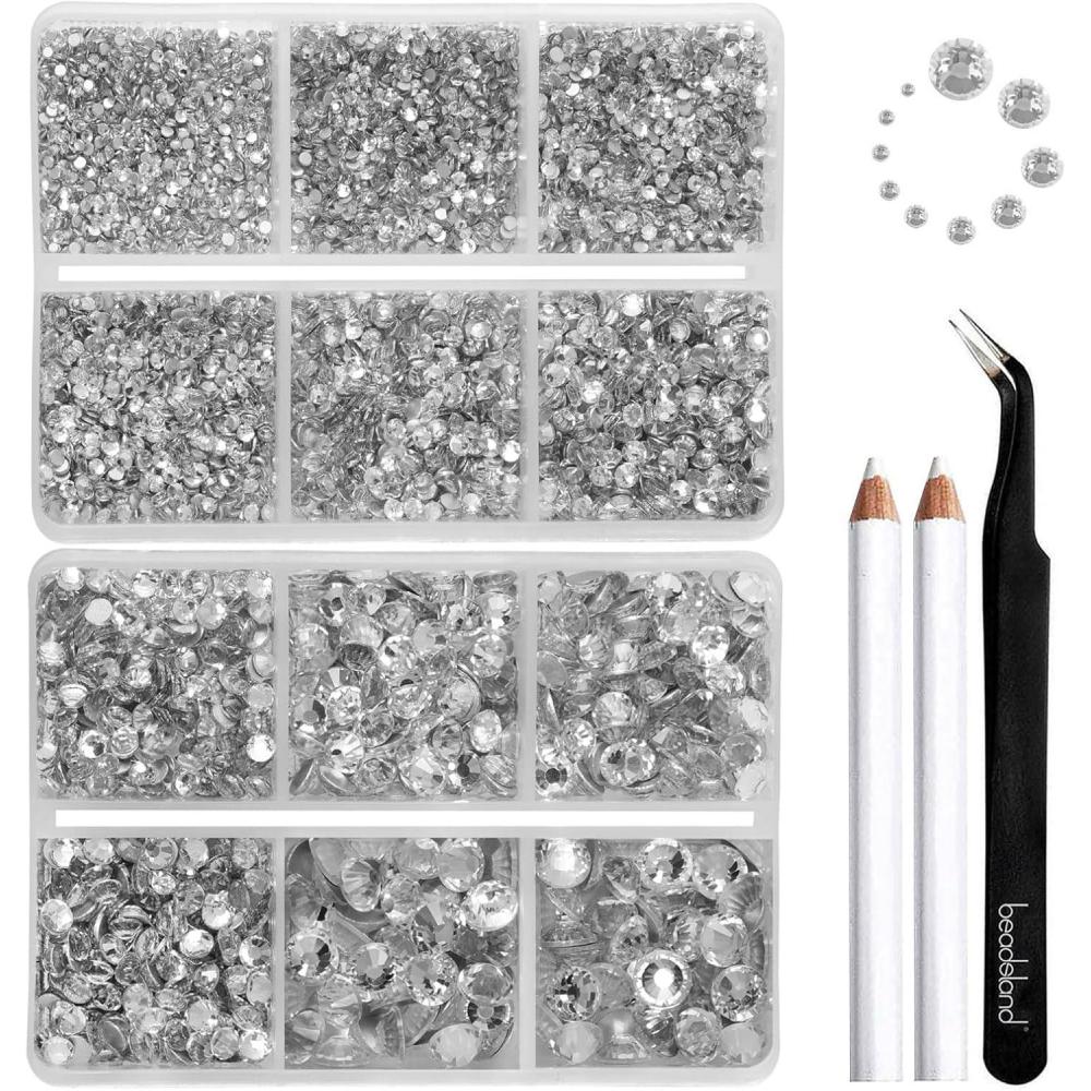 imageBeadsland 8300PCS Flatback Rhinestones AB Crystal Rhinestone Round Crystal Rhinestones for Crafts Mixed 10 Sizes with Wax Pencil and Tweezer Kit SS3SS30 Crystal ABcrystal
