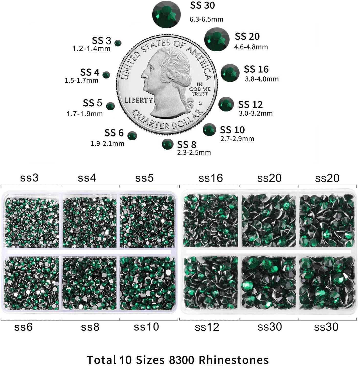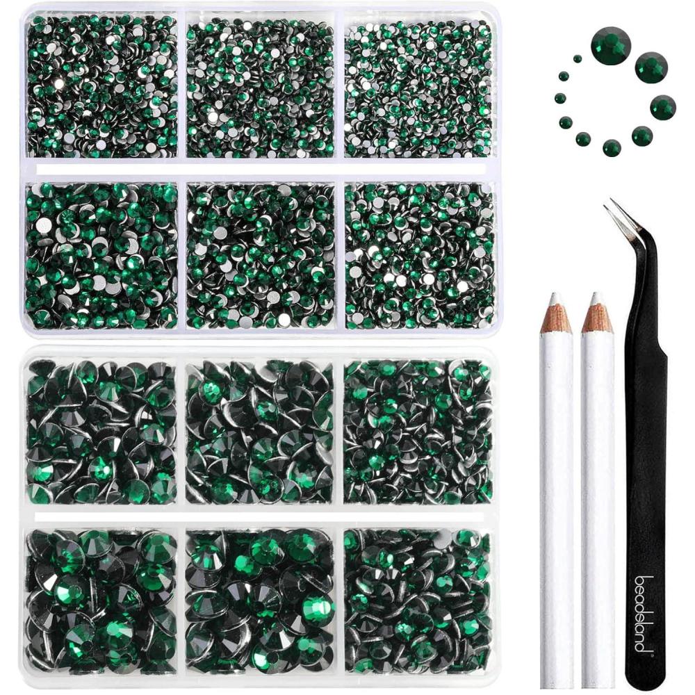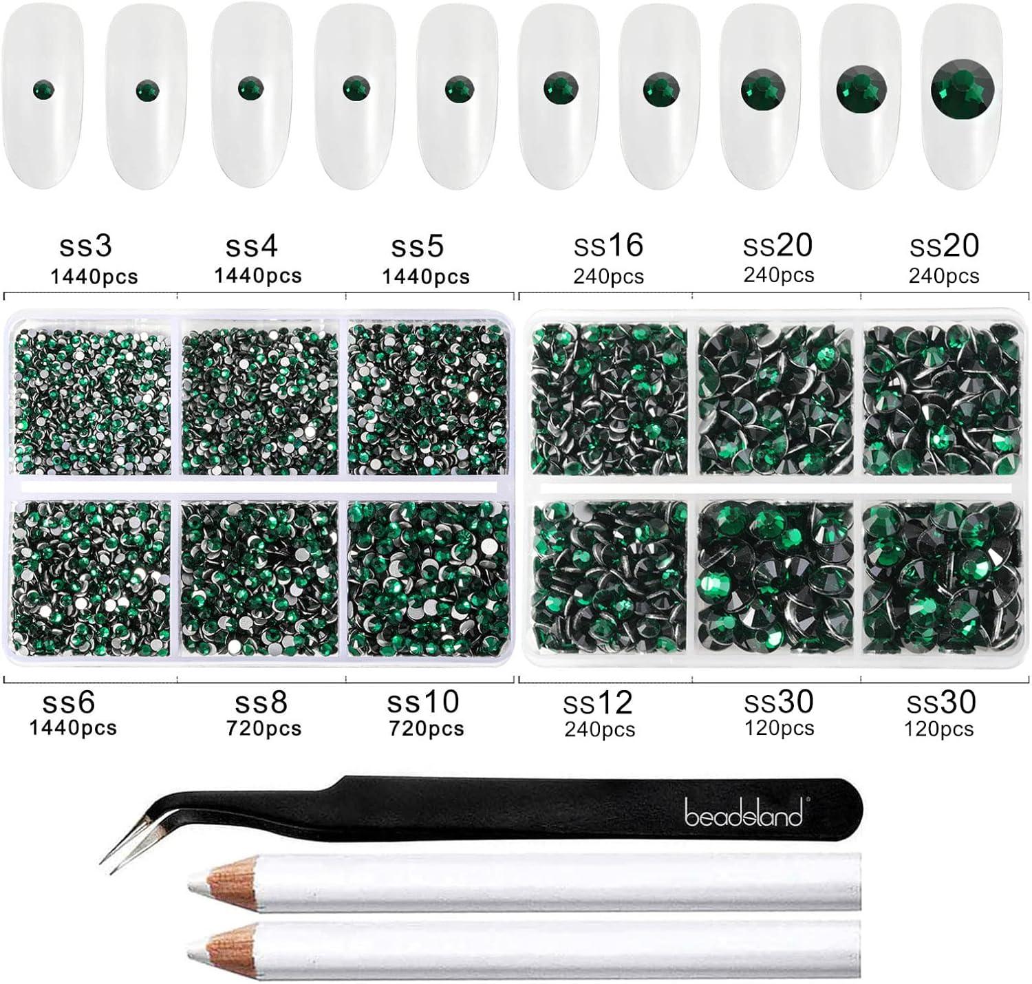 imageBeadsland 8300PCS Flatback Rhinestones AB Crystal Rhinestone Round Crystal Rhinestones for Crafts Mixed 10 Sizes with Wax Pencil and Tweezer Kit SS3SS30 Crystal ABEmerald