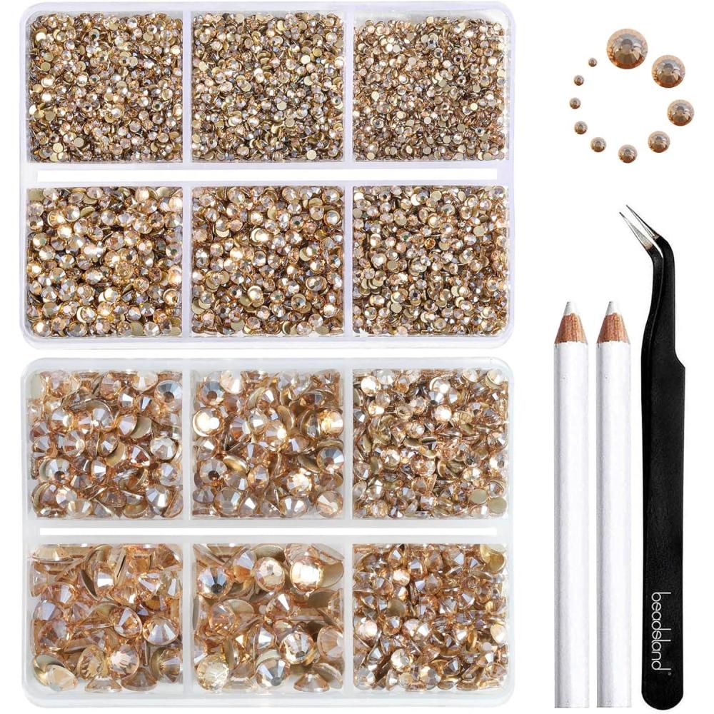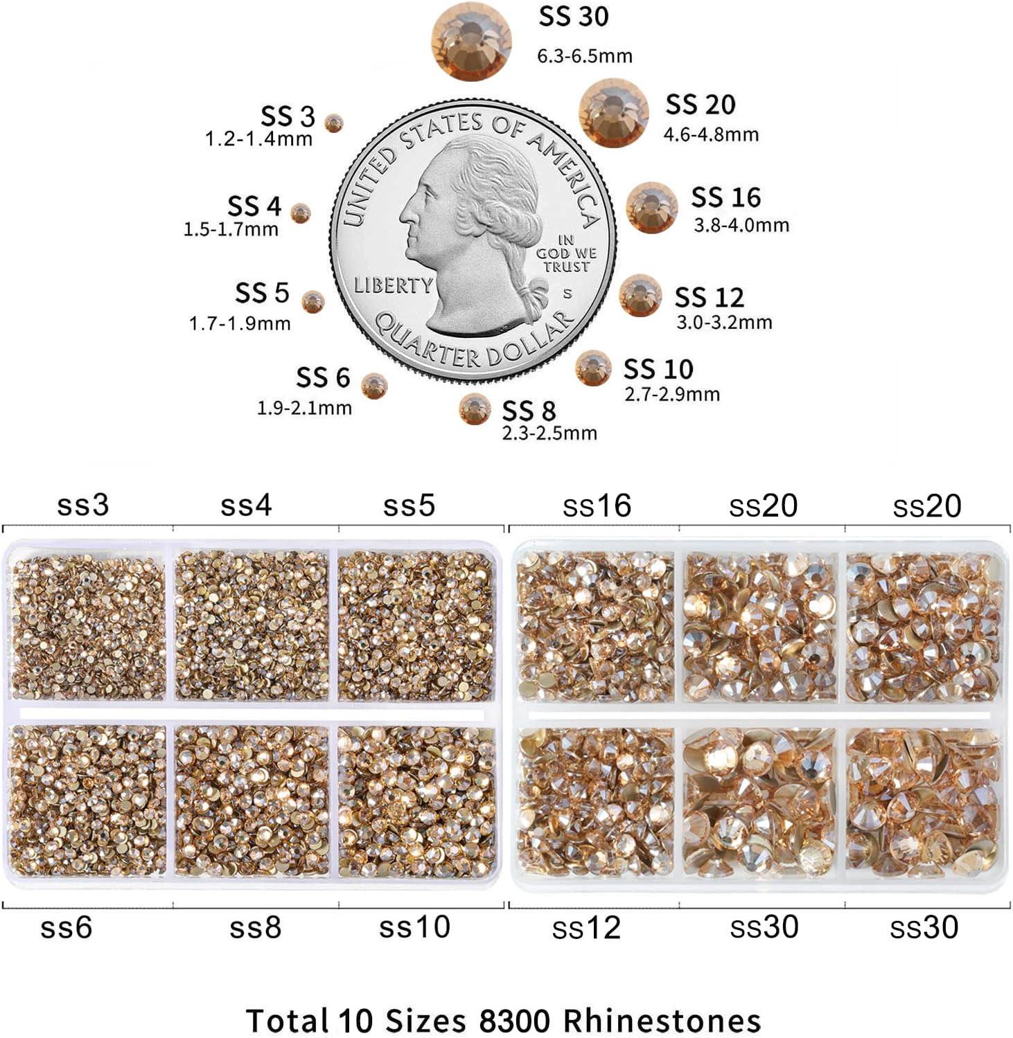 imageBeadsland 8300PCS Flatback Rhinestones AB Crystal Rhinestone Round Crystal Rhinestones for Crafts Mixed 10 Sizes with Wax Pencil and Tweezer Kit SS3SS30 Crystal ABGolden Shadow