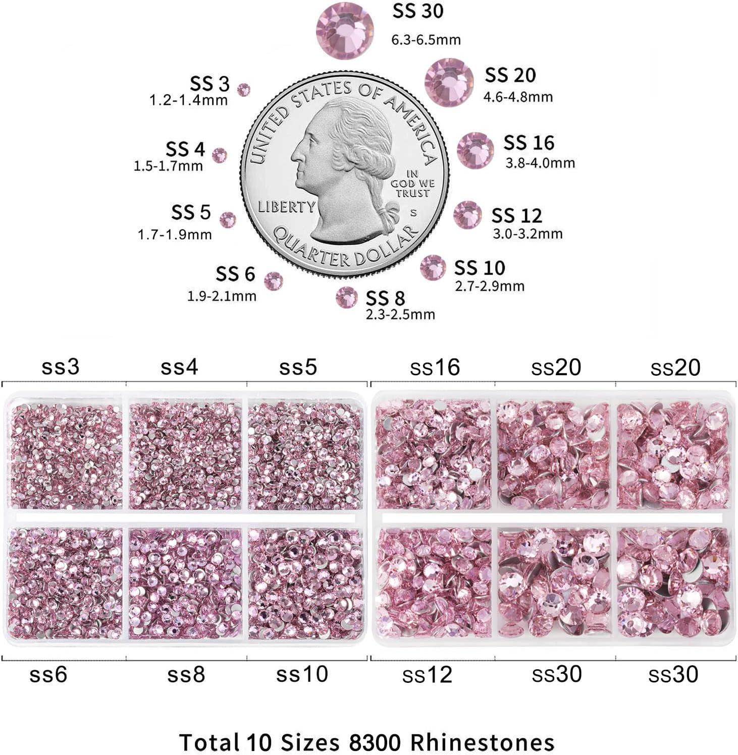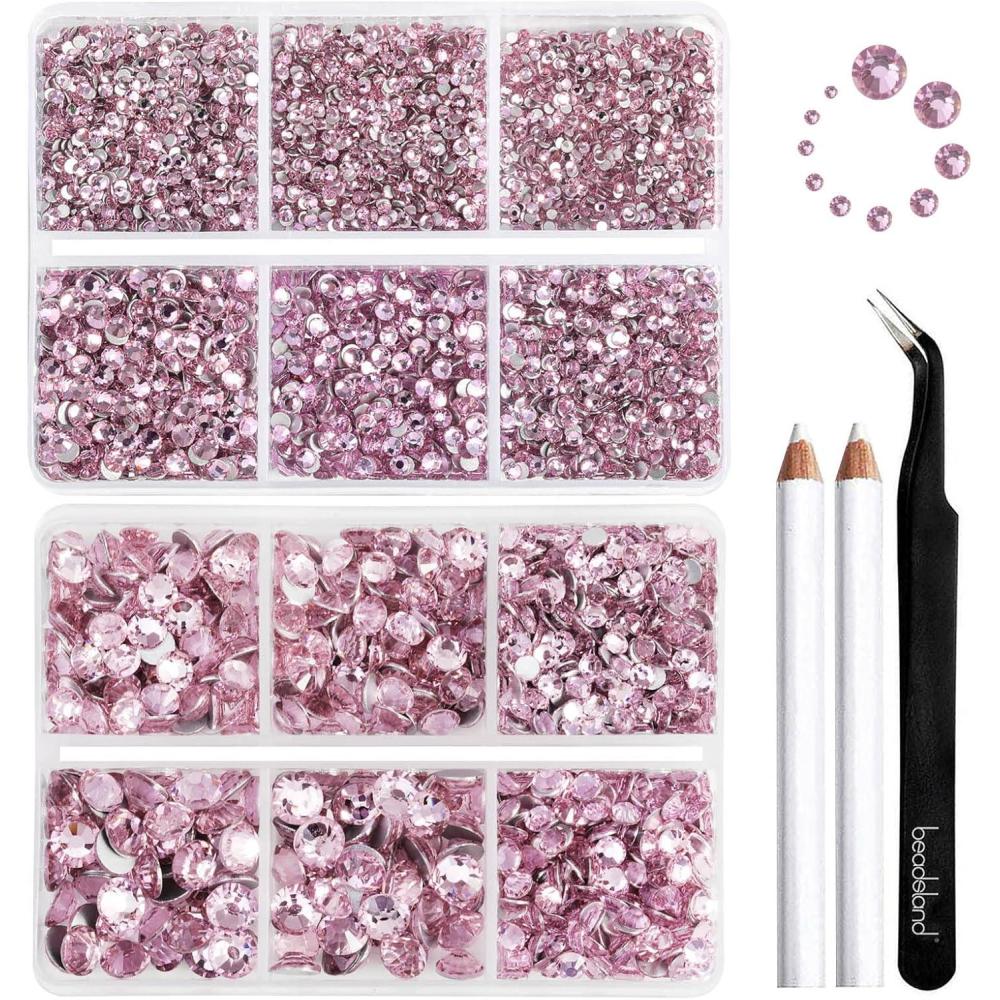 imageBeadsland 8300PCS Flatback Rhinestones AB Crystal Rhinestone Round Crystal Rhinestones for Crafts Mixed 10 Sizes with Wax Pencil and Tweezer Kit SS3SS30 Crystal ABLight pink