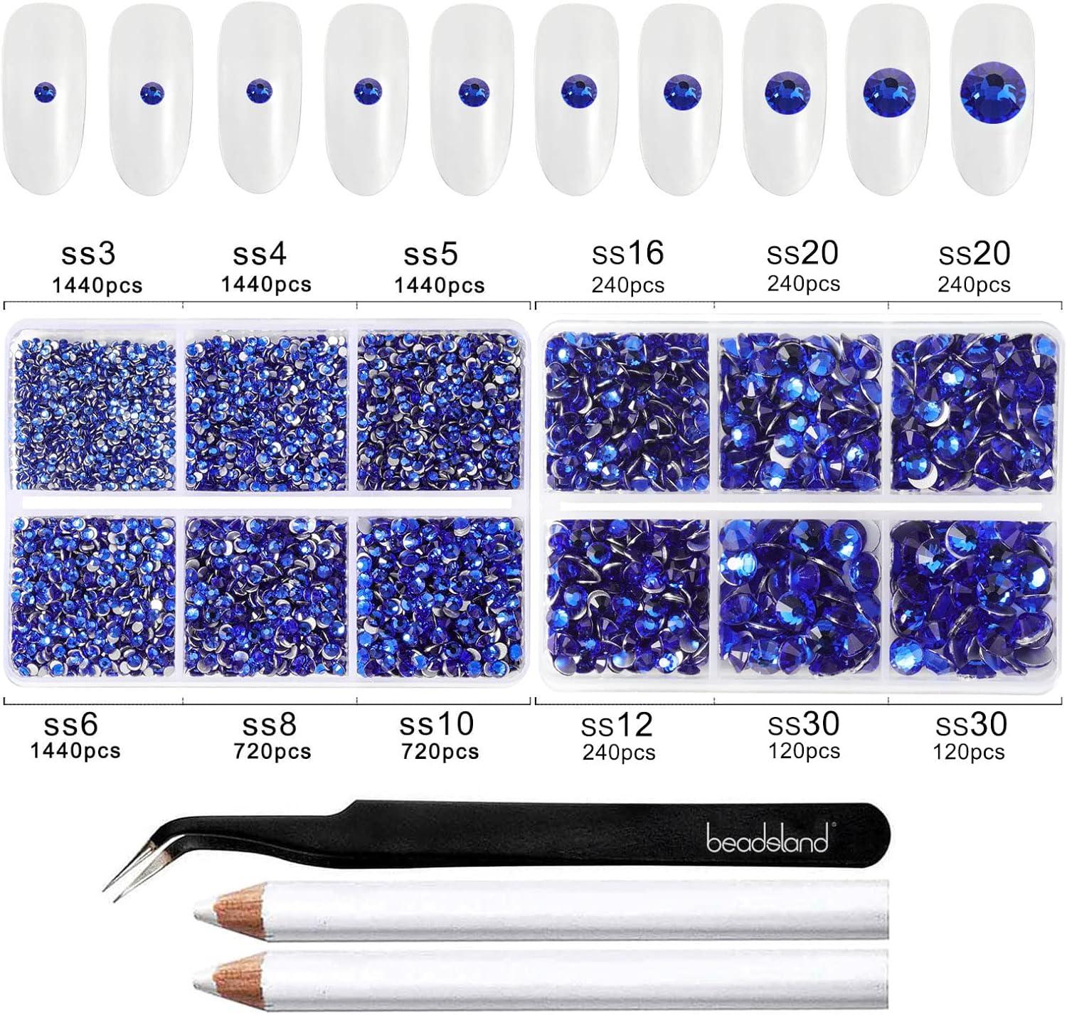 imageBeadsland 8300PCS Flatback Rhinestones AB Crystal Rhinestone Round Crystal Rhinestones for Crafts Mixed 10 Sizes with Wax Pencil and Tweezer Kit SS3SS30 Crystal ABSapphire