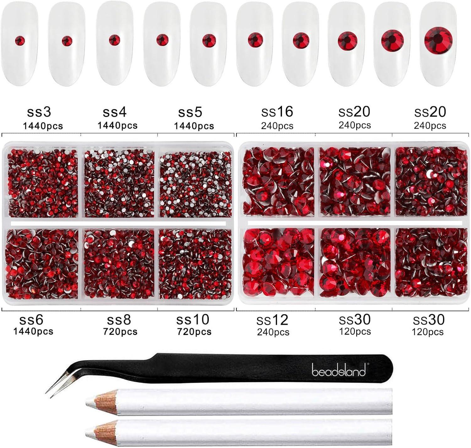 imageBeadsland 8300PCS Flatback Rhinestones AB Crystal Rhinestone Round Crystal Rhinestones for Crafts Mixed 10 Sizes with Wax Pencil and Tweezer Kit SS3SS30 Crystal ABSilver Hematite