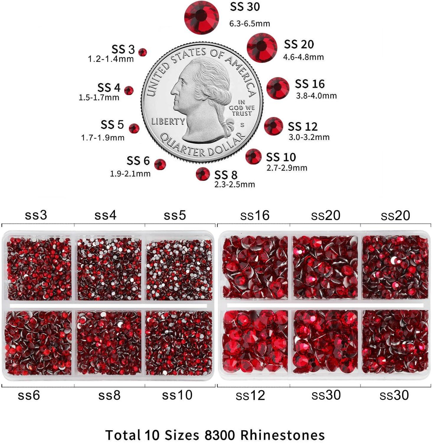 Beadsland 8300PCS Flatback Rhinestones, AB Crystal Rhinestone Round Crystal Rhinestones for Crafts, Mixed 10 Sizes with Wax Pencil and Tweezer Kit, SS3-SS30, Crystal AB(Siam)