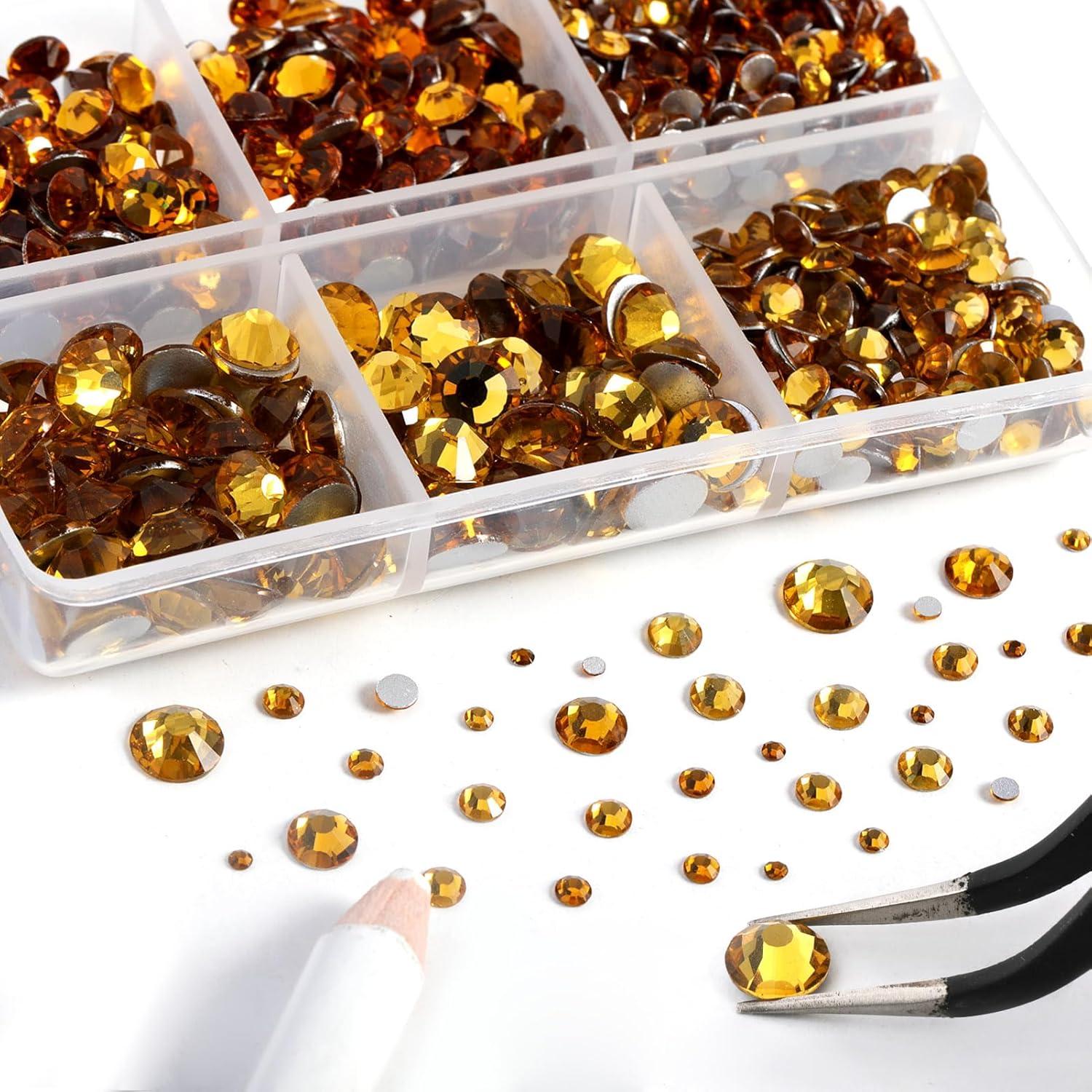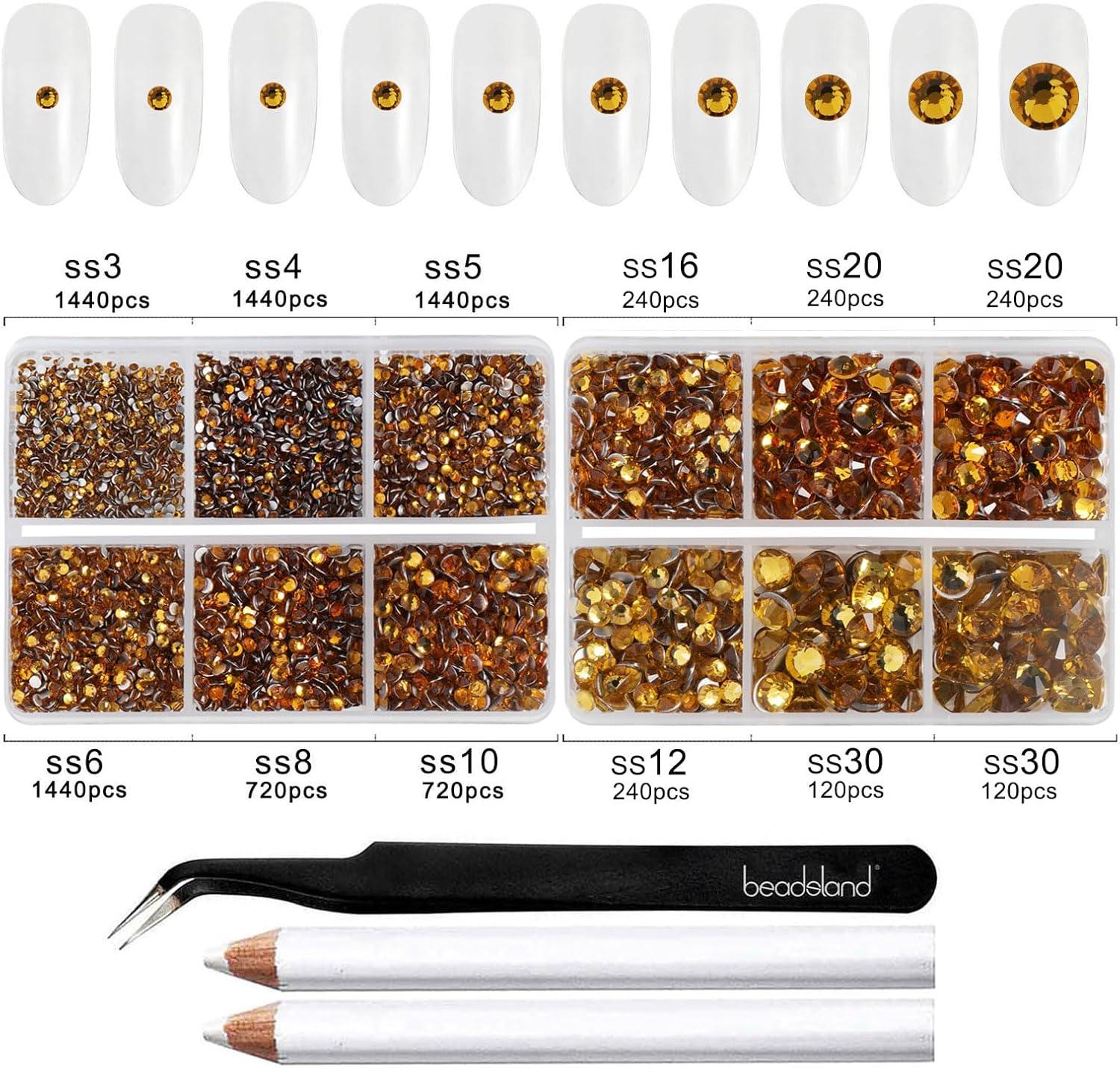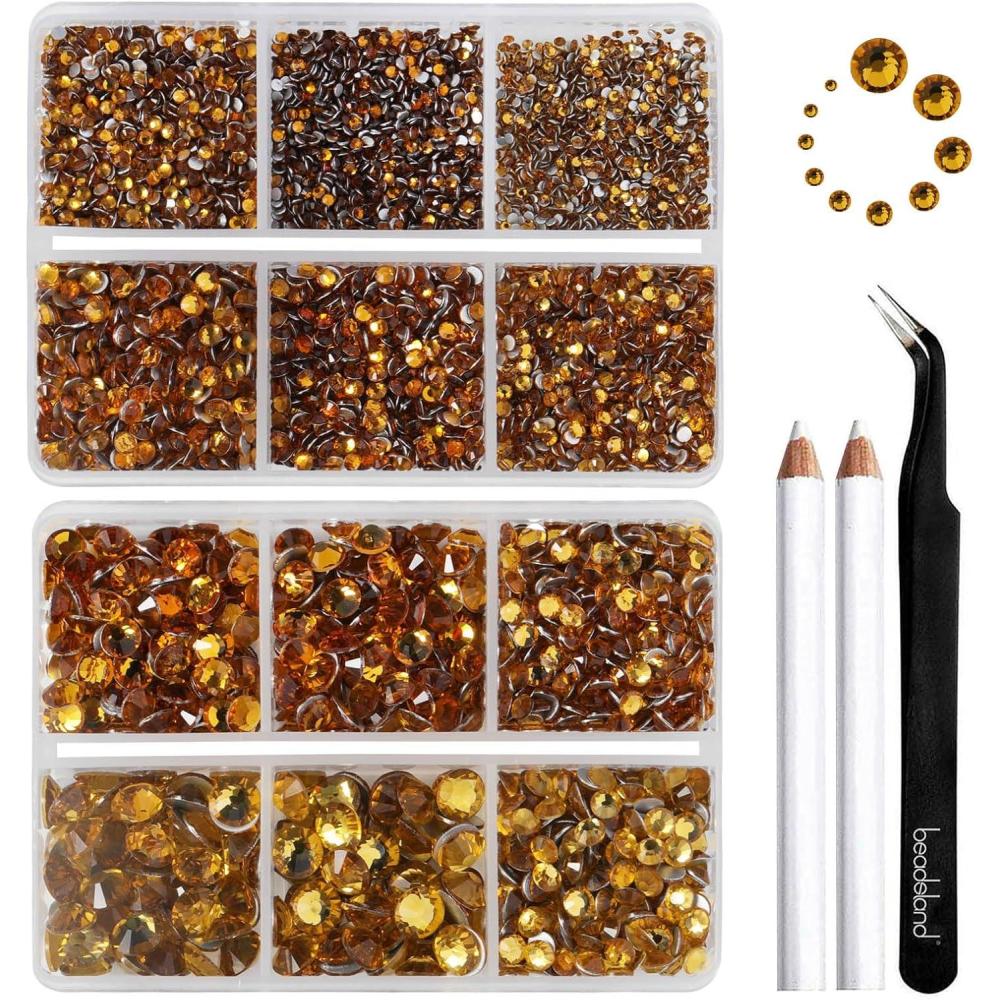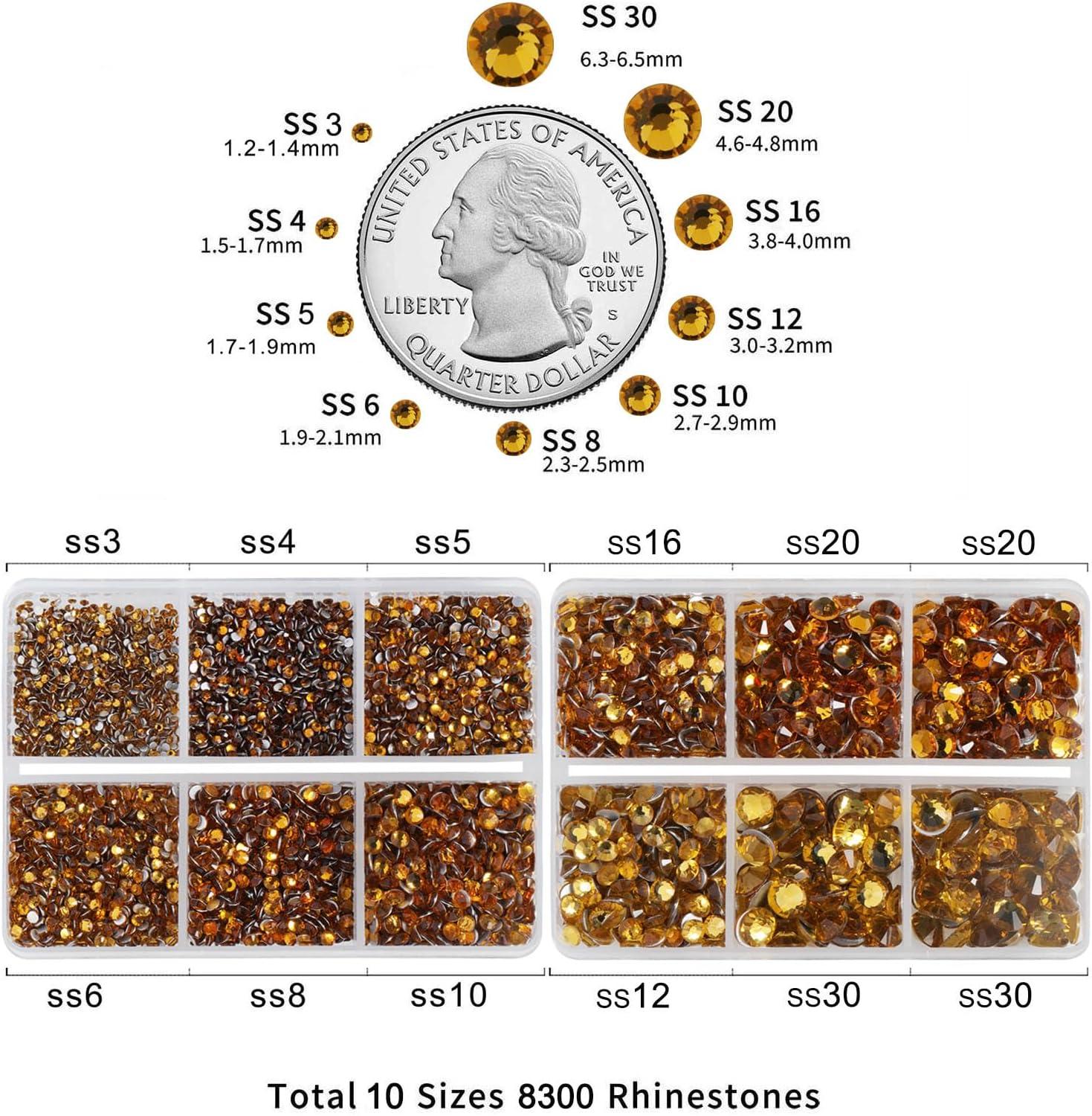 imageBeadsland 8300PCS Flatback Rhinestones AB Crystal Rhinestone Round Crystal Rhinestones for Crafts Mixed 10 Sizes with Wax Pencil and Tweezer Kit SS3SS30 Crystal ABTopaz