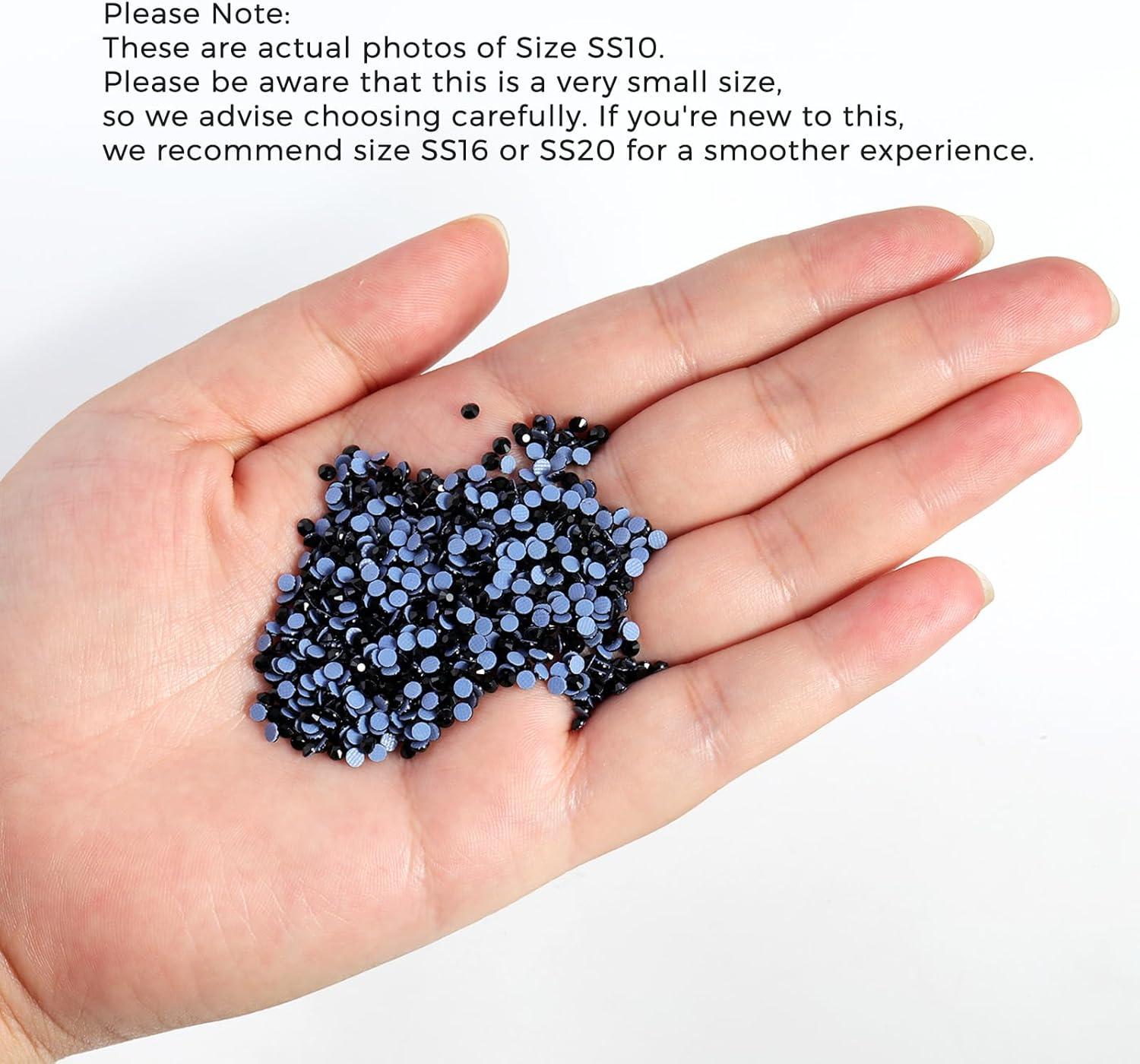 Beadsland Hotfix Rhinestones, 2880pcs Flatback Crystal Rhinestones for Crafts Clothes DIY Decorations, Champagne, SS8, 2.3-2.5mm(Black)
