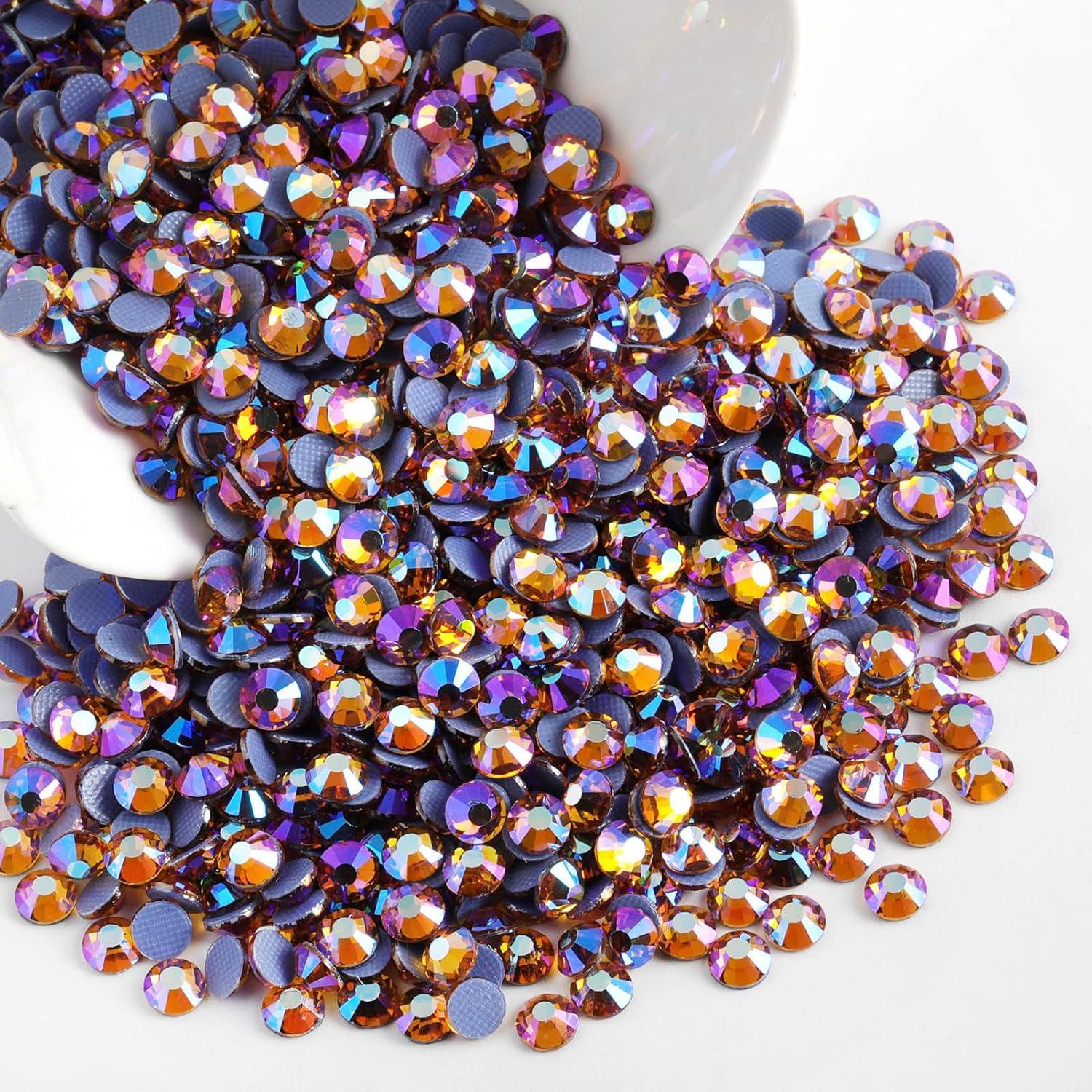 Beadsland Hotfix Rhinestones, 2880pcs Flatback Crystal Rhinestones for Crafts Clothes DIY Decorations, Champagne, SS8, 2.3-2.5mm(Violet)