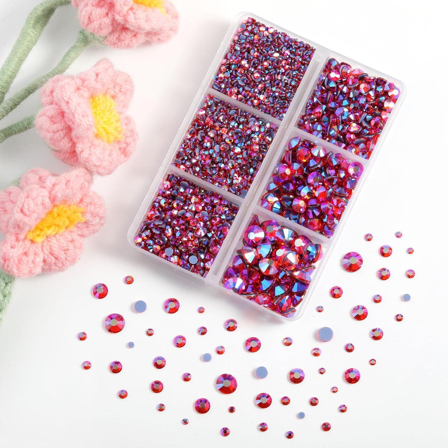 imageBEADSLAND Hotfix Rhinestones 4000 PCS AB Rhinestones for Clothes Crafts Mixed 6 Sizes with Wax Pencil and Tweezers Kit SS6SS30 Crystal ABLight Pink
