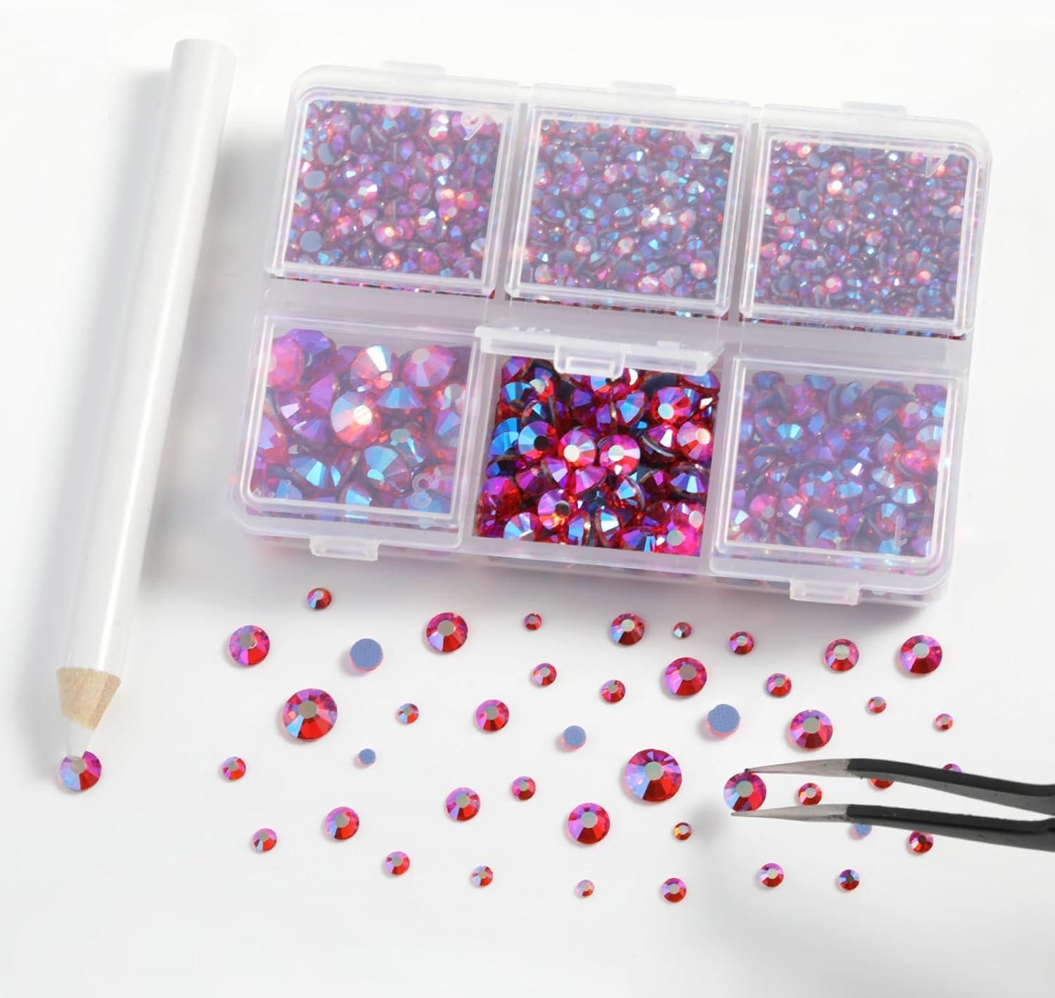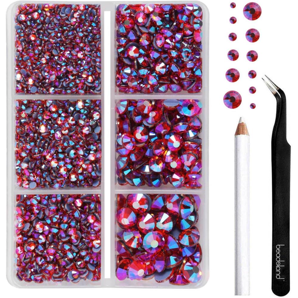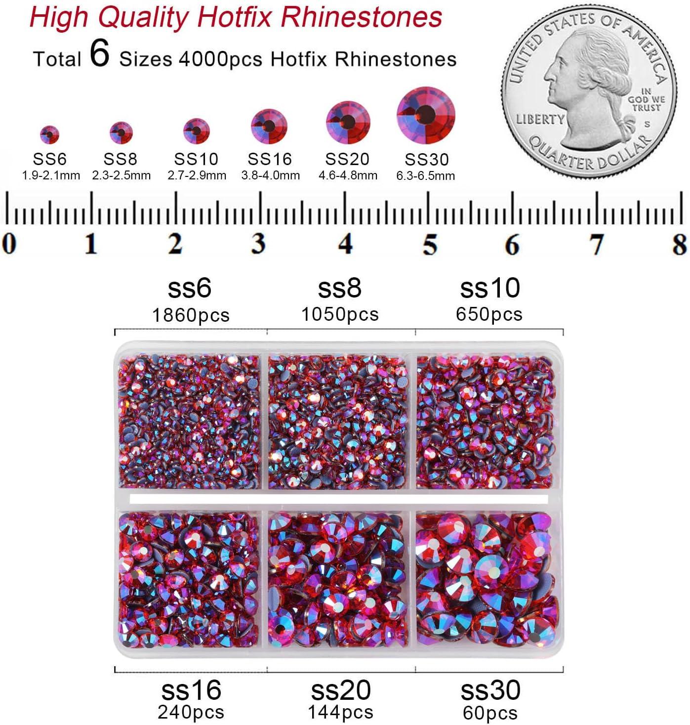 imageBEADSLAND Hotfix Rhinestones 4000 PCS AB Rhinestones for Clothes Crafts Mixed 6 Sizes with Wax Pencil and Tweezers Kit SS6SS30 Crystal ABHyacinth AB
