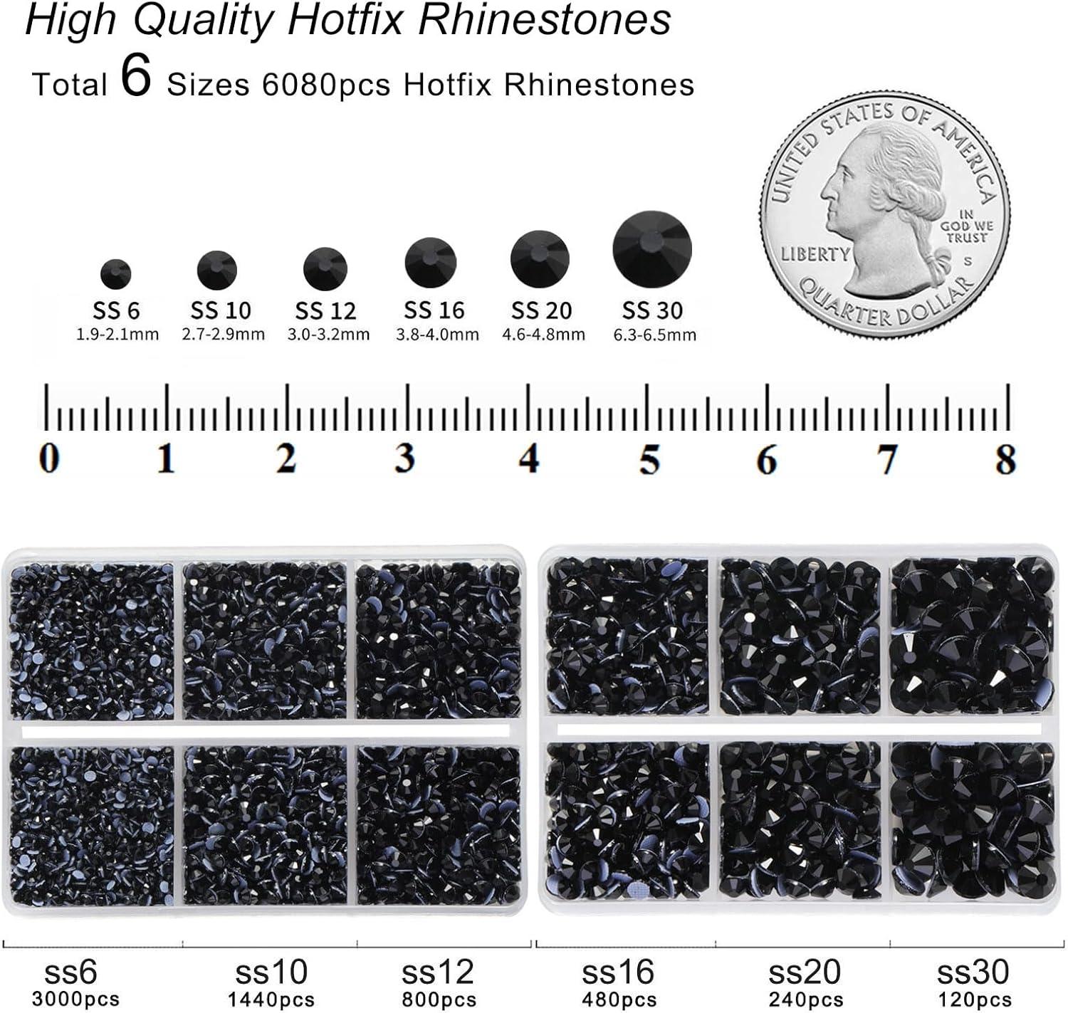 BEADSLAND Hotfix Rhinestones, 6080PCS Clear Rhinestones for Clothes Crafts Mixed 6 Sizes with Wax Pencil and Tweezers Kit, SS6-SS30, Crystal(Black)