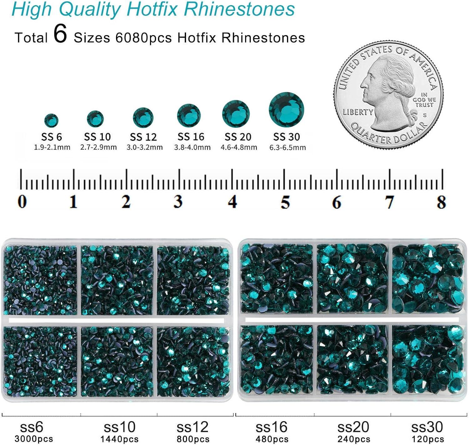 BEADSLAND Hotfix Rhinestones, 6080PCS Clear Rhinestones for Clothes Crafts Mixed 6 Sizes with Wax Pencil and Tweezers Kit, SS6-SS30, Crystal(Capri Blue)