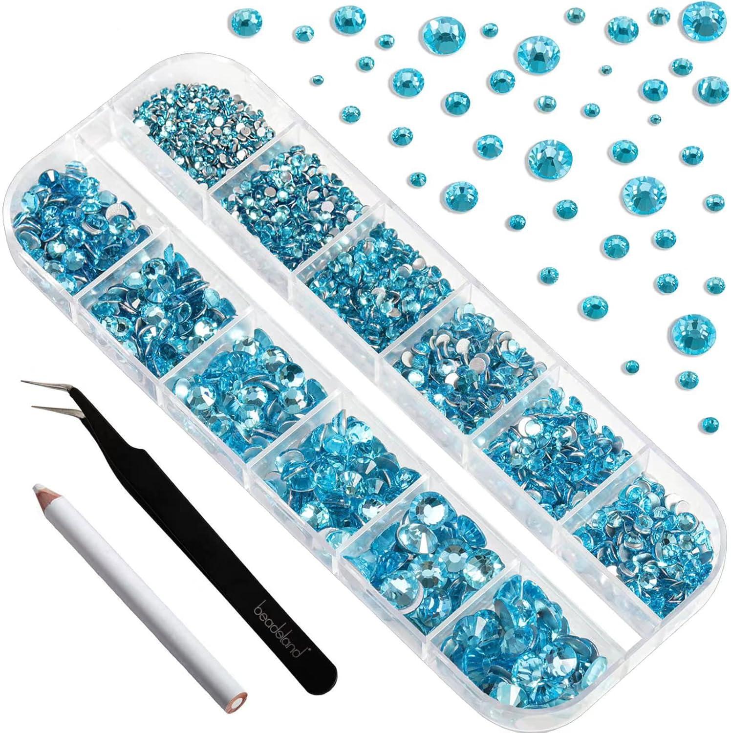 imageBeadsland Rhinestones for Makeup8 Sizes 2500pcs Red Flatback Rhinestones Eye Gems for Nails Crafts with Tweezers and Wax PencilSiamSS4SS30Aquamarine AB