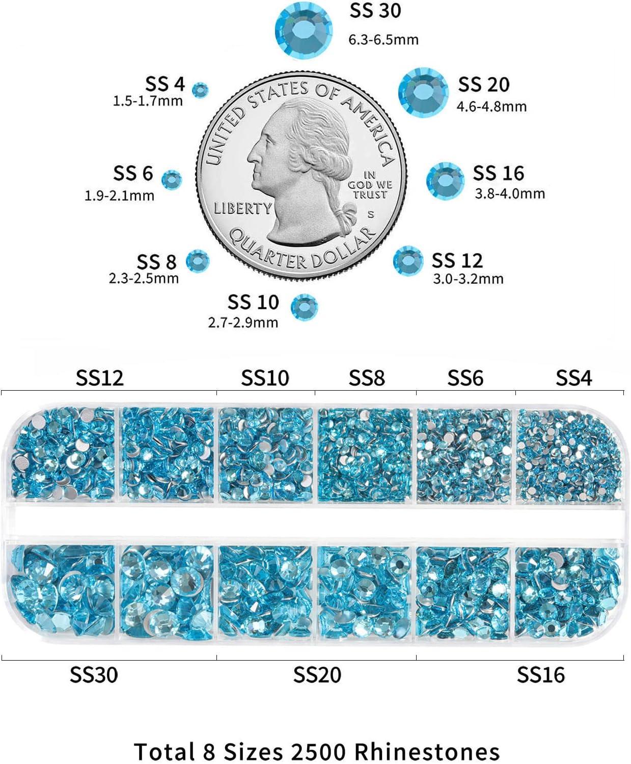 imageBeadsland Rhinestones for Makeup8 Sizes 2500pcs Red Flatback Rhinestones Eye Gems for Nails Crafts with Tweezers and Wax PencilSiamSS4SS30Aquamarine
