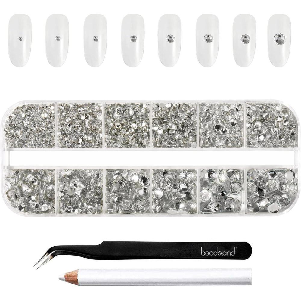 imageBeadsland Rhinestones for Makeup8 Sizes 2500pcs Red Flatback Rhinestones Eye Gems for Nails Crafts with Tweezers and Wax PencilSiamSS4SS30Crystal AB