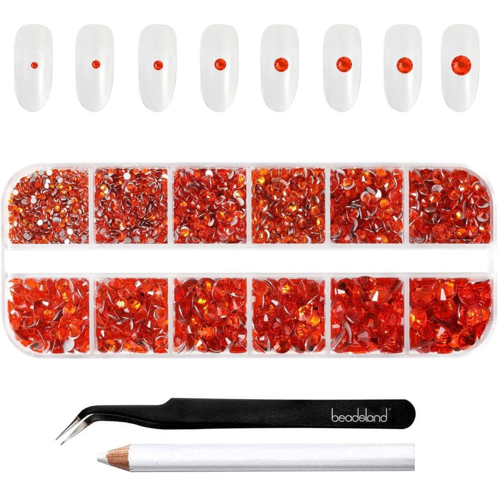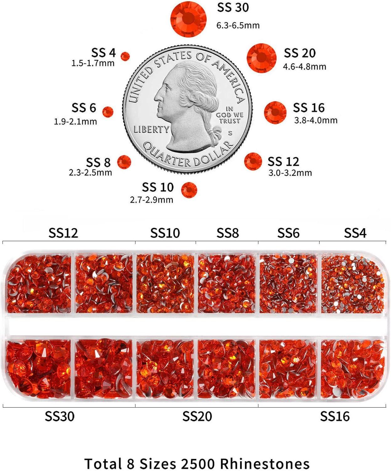 imageBeadsland Rhinestones for Makeup8 Sizes 2500pcs Red Flatback Rhinestones Eye Gems for Nails Crafts with Tweezers and Wax PencilSiamSS4SS30Orange