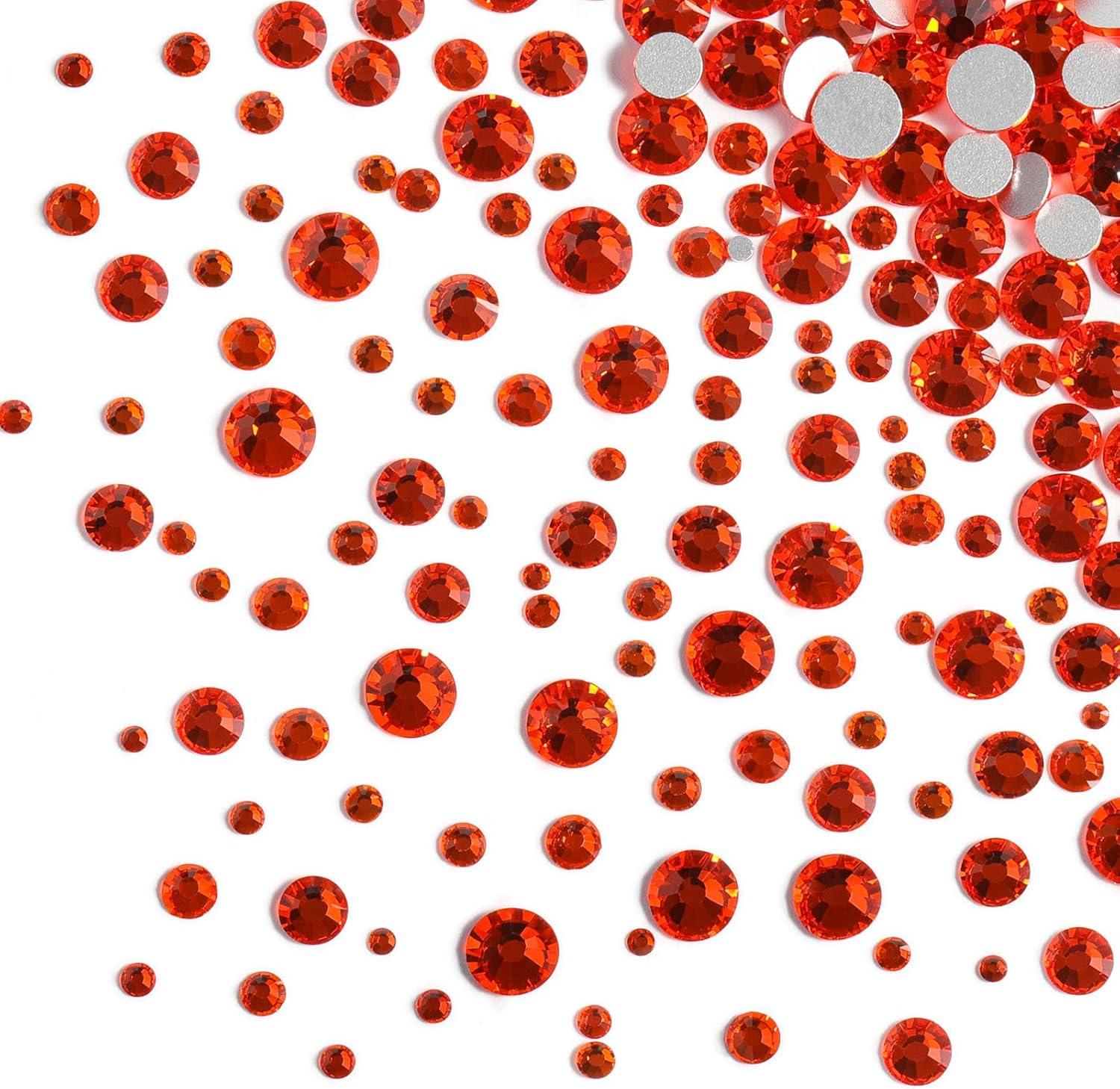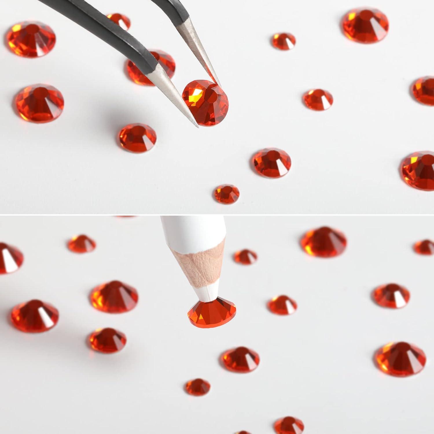 Beadsland Rhinestones for Makeup,8 Sizes 2500pcs Red Flatback Rhinestones Eye Gems for Nails Crafts with Tweezers and Wax Pencil,Siam,SS4-SS30(Orange)