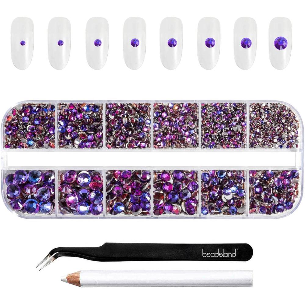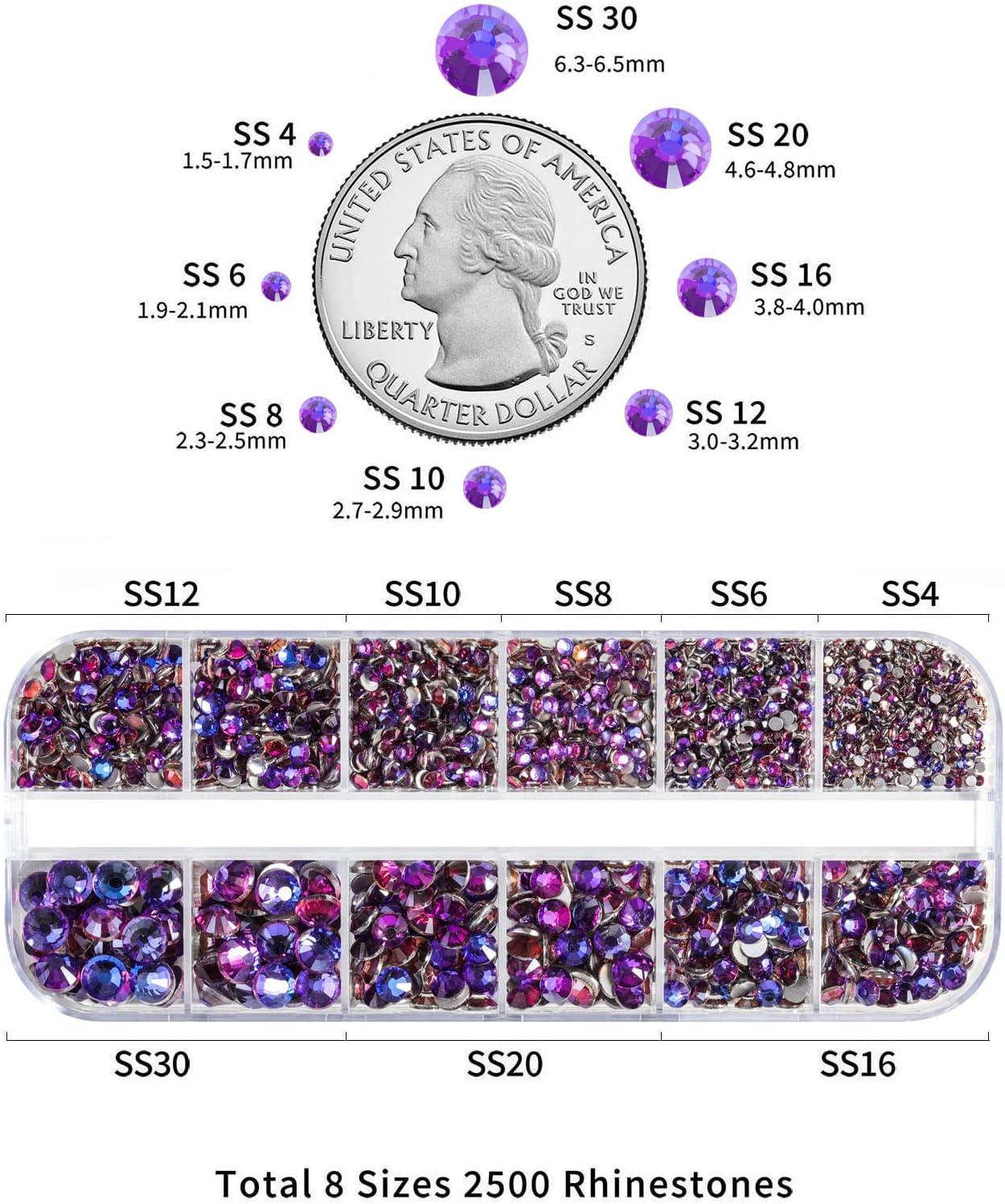 imageBeadsland Rhinestones for Makeup8 Sizes 2500pcs Red Flatback Rhinestones Eye Gems for Nails Crafts with Tweezers and Wax PencilSiamSS4SS30Purple Velvet