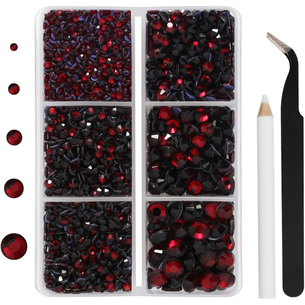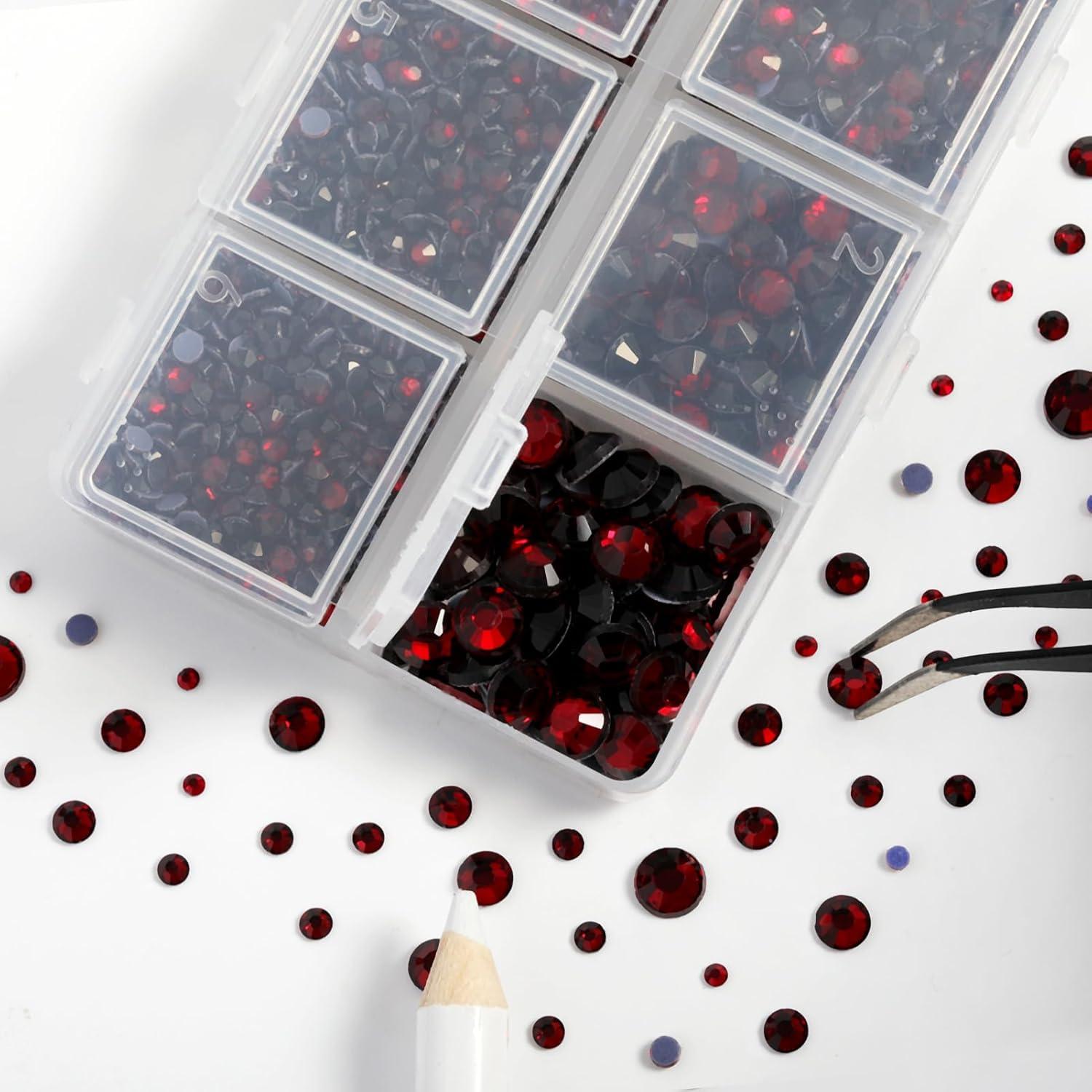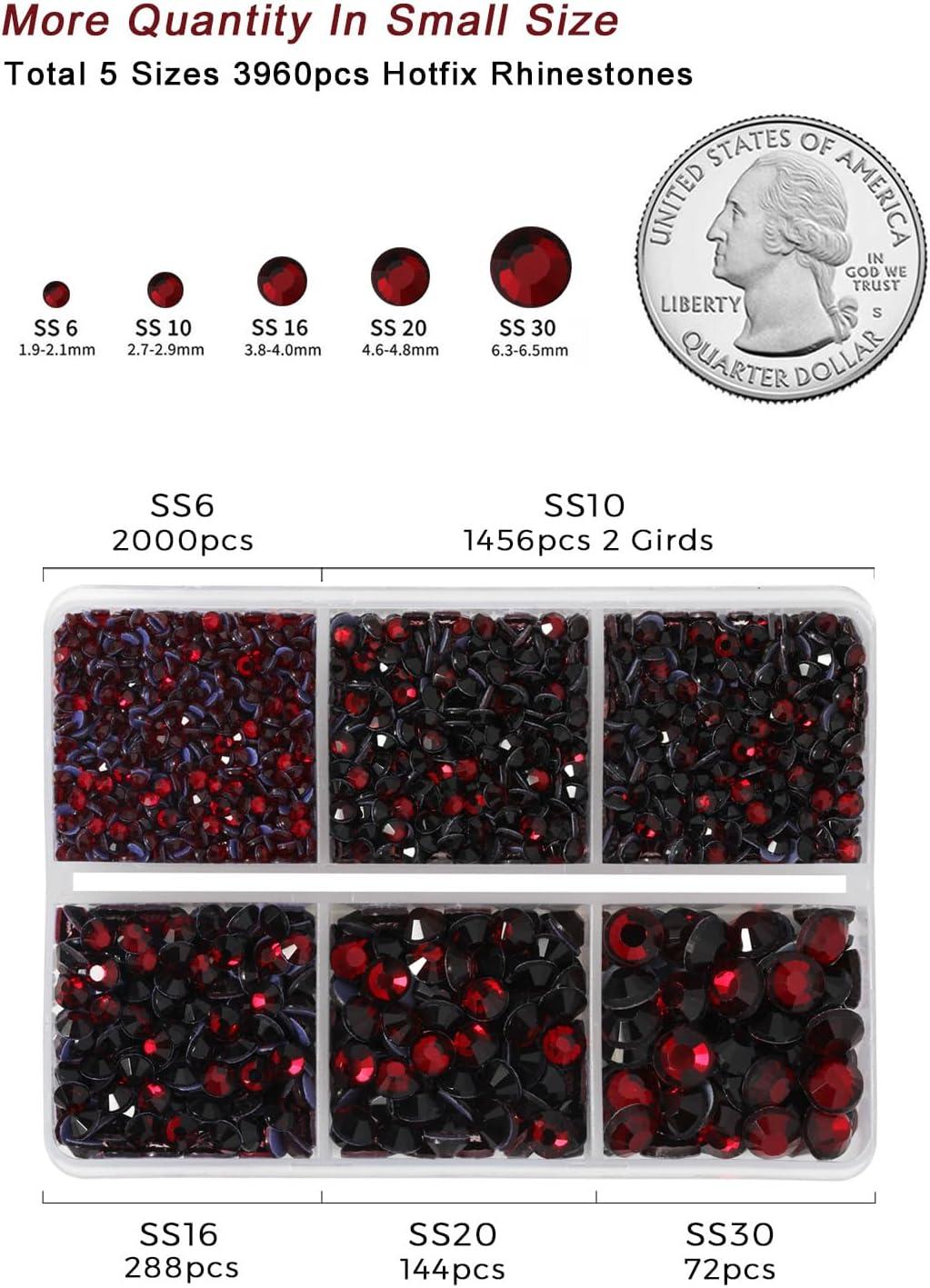 imageHotfix Rhinestones 3960pcs Red Rhinestone for Clothes Hot Fix Crystals Rhinestones with Tweezers and Wax Pencil KitMixed 5 Sizes SS6SS30 SiamDark Siam