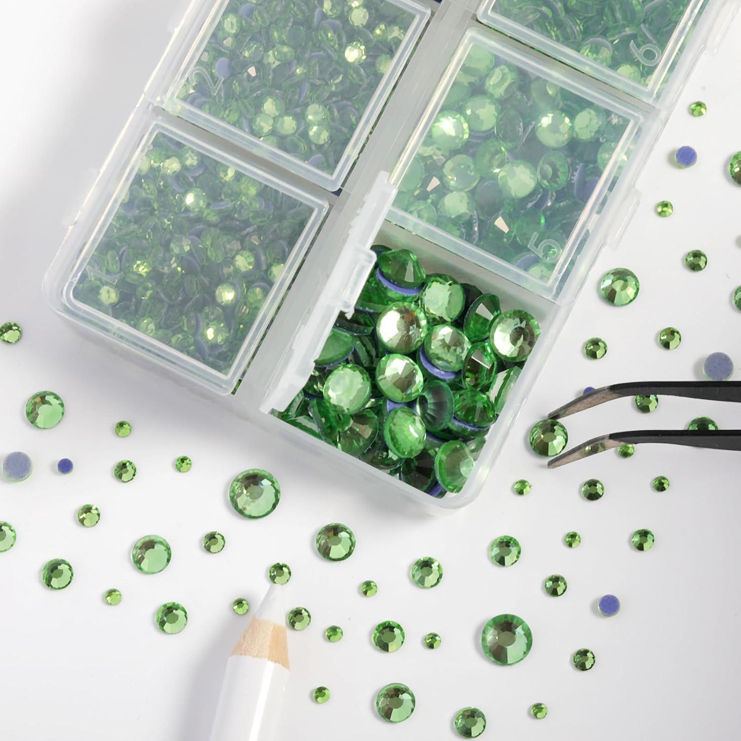 imageHotfix Rhinestones 3960pcs Red Rhinestone for Clothes Hot Fix Crystals Rhinestones with Tweezers and Wax Pencil KitMixed 5 Sizes SS6SS30 SiamLight Green