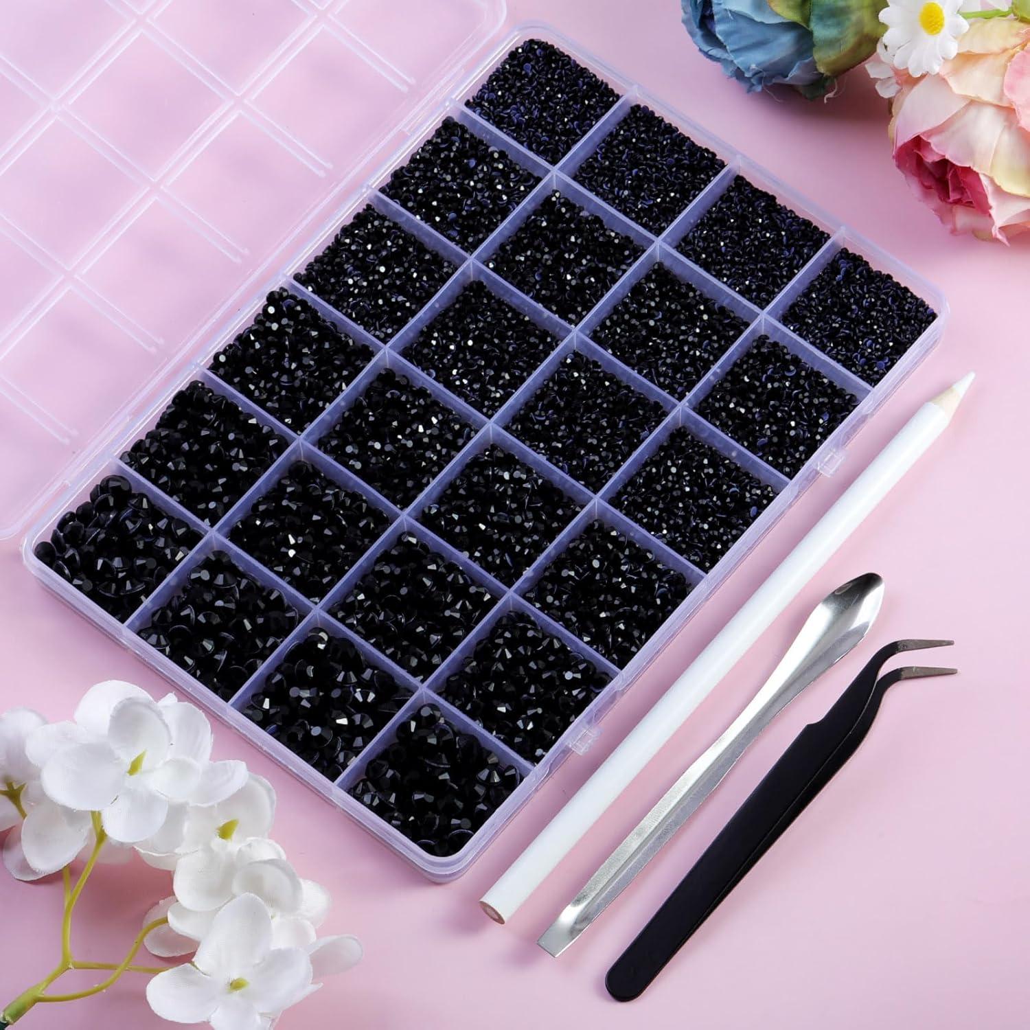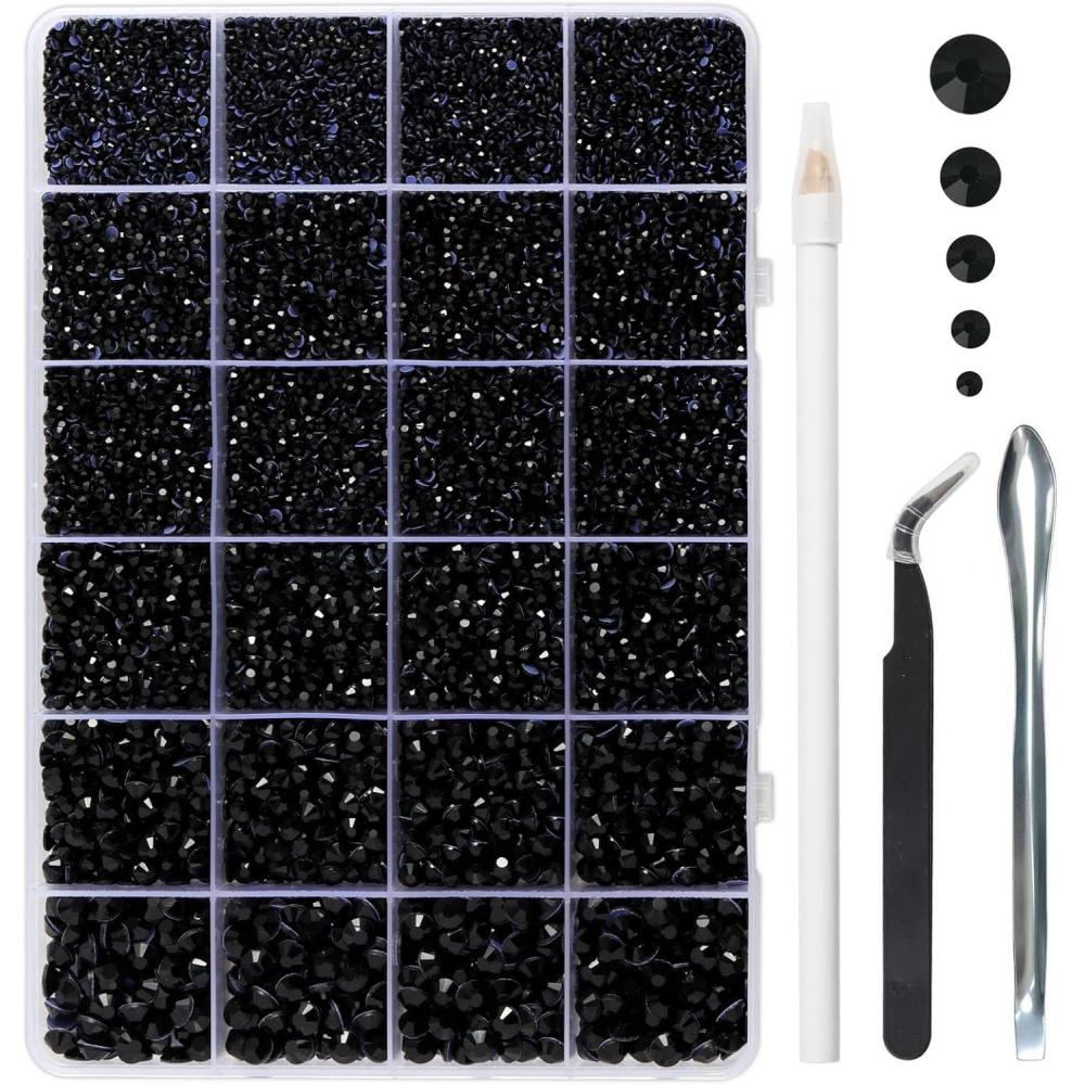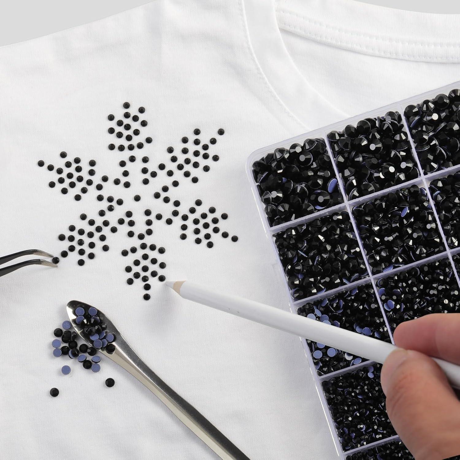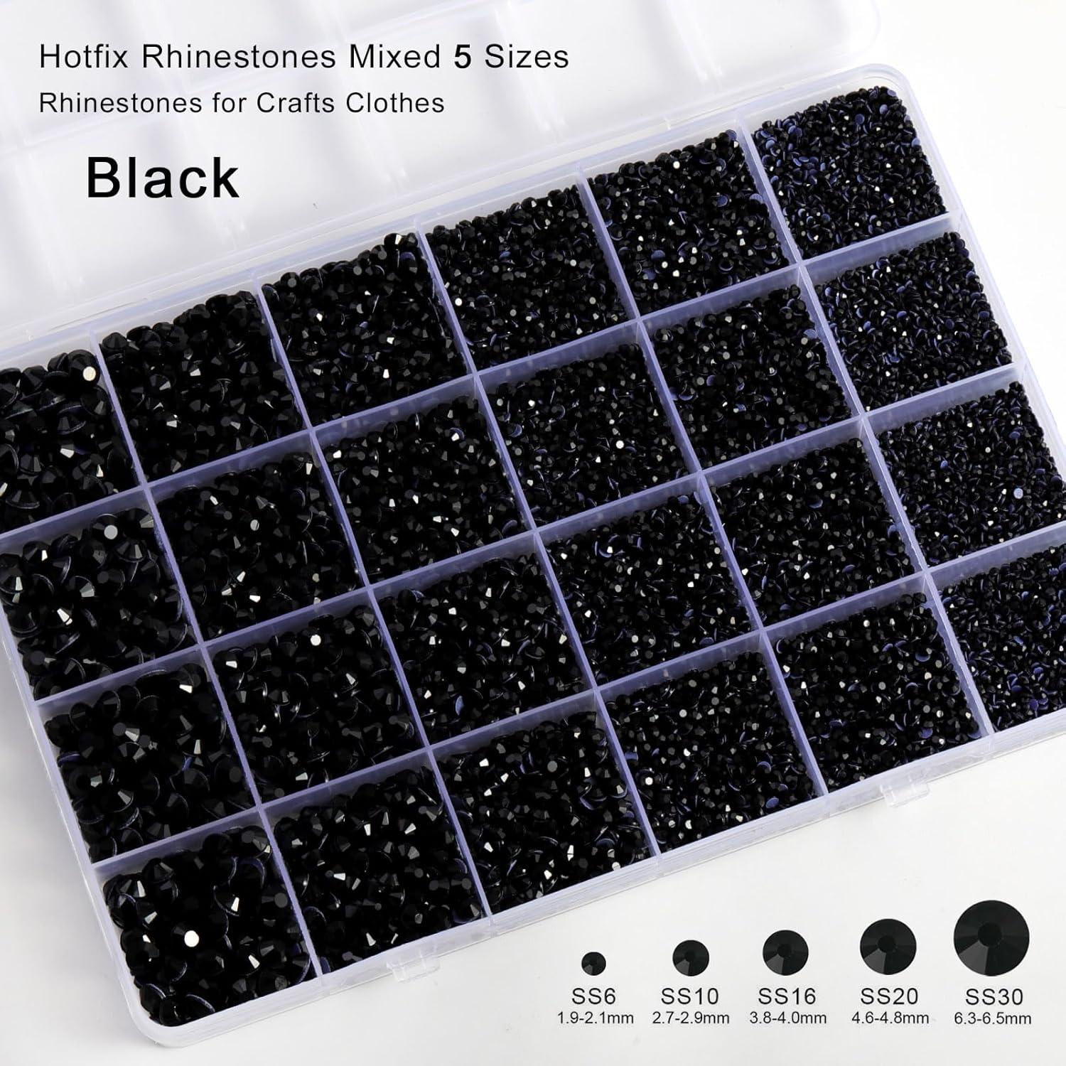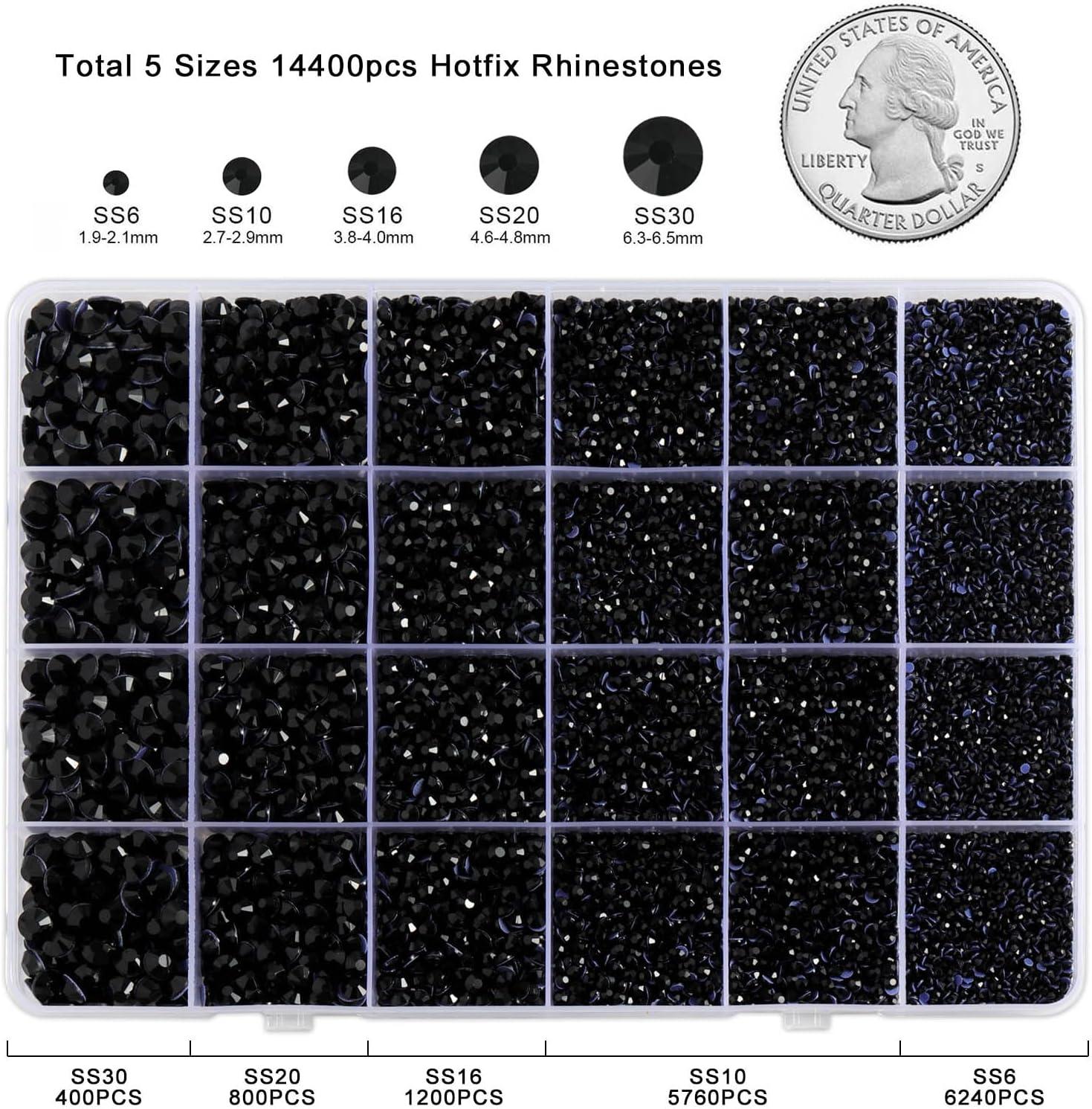 imageHotfix Rhinestones Multi Sizes Kit 14400 pcs Heat Fix Rhinestone for Bedazzling Clothes Crafts Mixed 5 Sizes with Wax Pencil Tweezers and Spoon SS6SS30 Clear AB and CrystalBlack